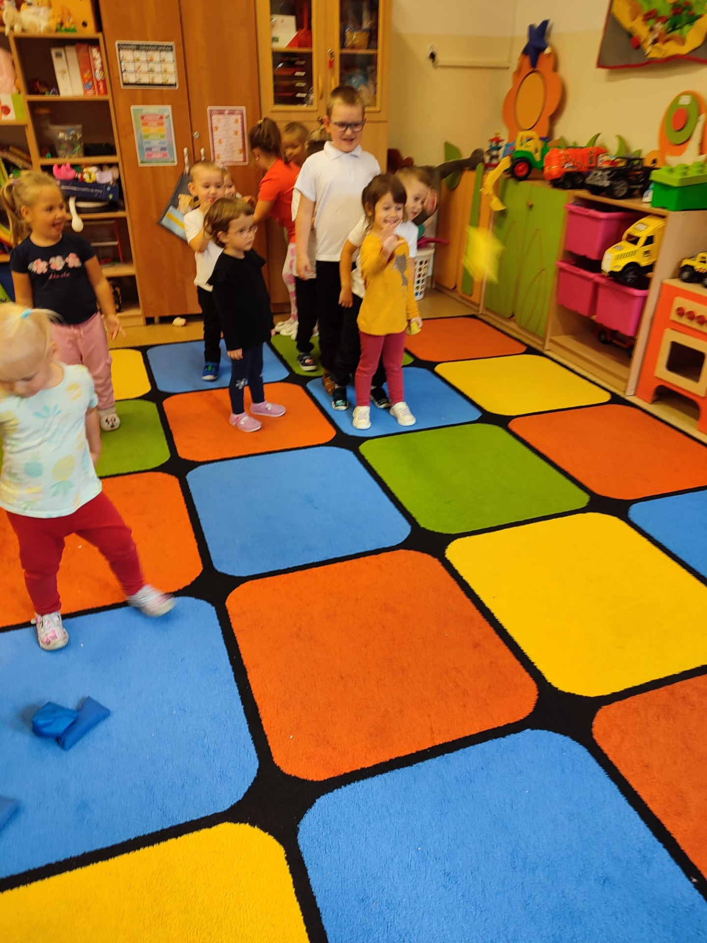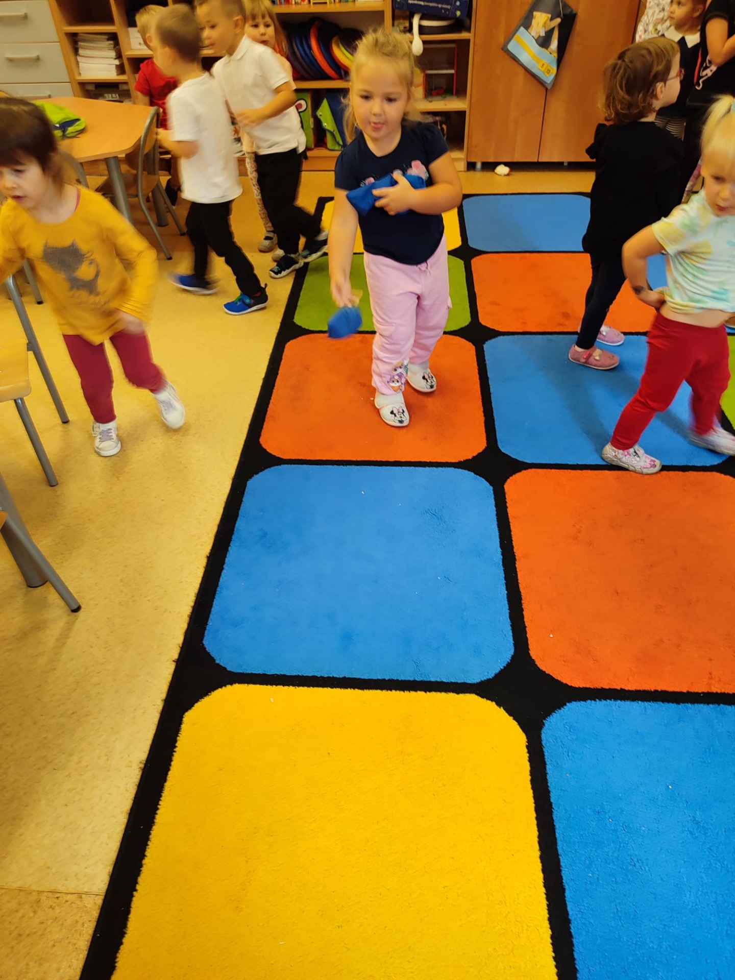 Przedszkolaki z ogromnym entuzjazmem uczestniczyły w zabawach, dopingując się nawzajem i ciesząc się z osiągniętych sukcesów. Całość zakończyła się wspólnym podsumowaniem i przypomnieniem, jak ważny jest ruch w codziennym życiu.