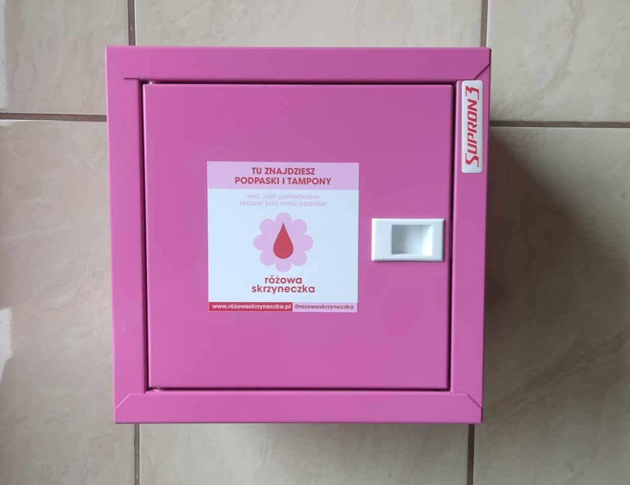 W naszej szkole pojawiła się również różowa skrzyneczka – miejsce, w którym każda uczennica może znaleźć środki higieniczne, gdy tylko zajdzie taka potrzeba.