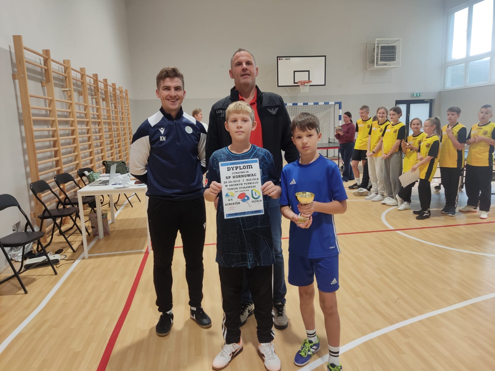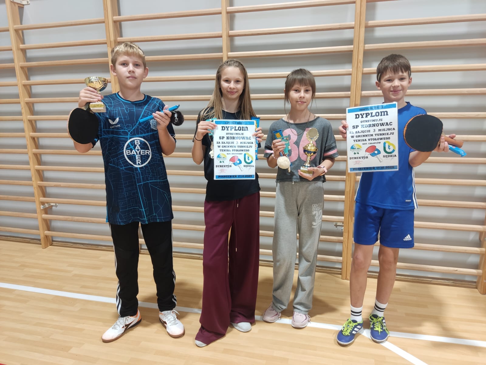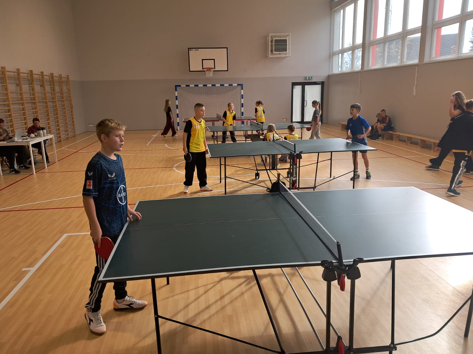 18 października w Zespole Szkolno - Przedszkolnym w Pogrzebieniu odbyły się gminne zawody w tenisie stołowym dziewcząt i chłopców. Naszą szkołę reprezentowali uczniowie z klasy 6: Kamil Wendelberger, Filip Puterczak, Zuzanna Solich, Nina Mielniczuk. Po bardzo zaciętej rywalizacji drużyna chłopców zajęła 3 miejsce, zespół dziewcząt uplasował się również na 3 miejscu. Gratulacje dla młodych tenisistów!!!