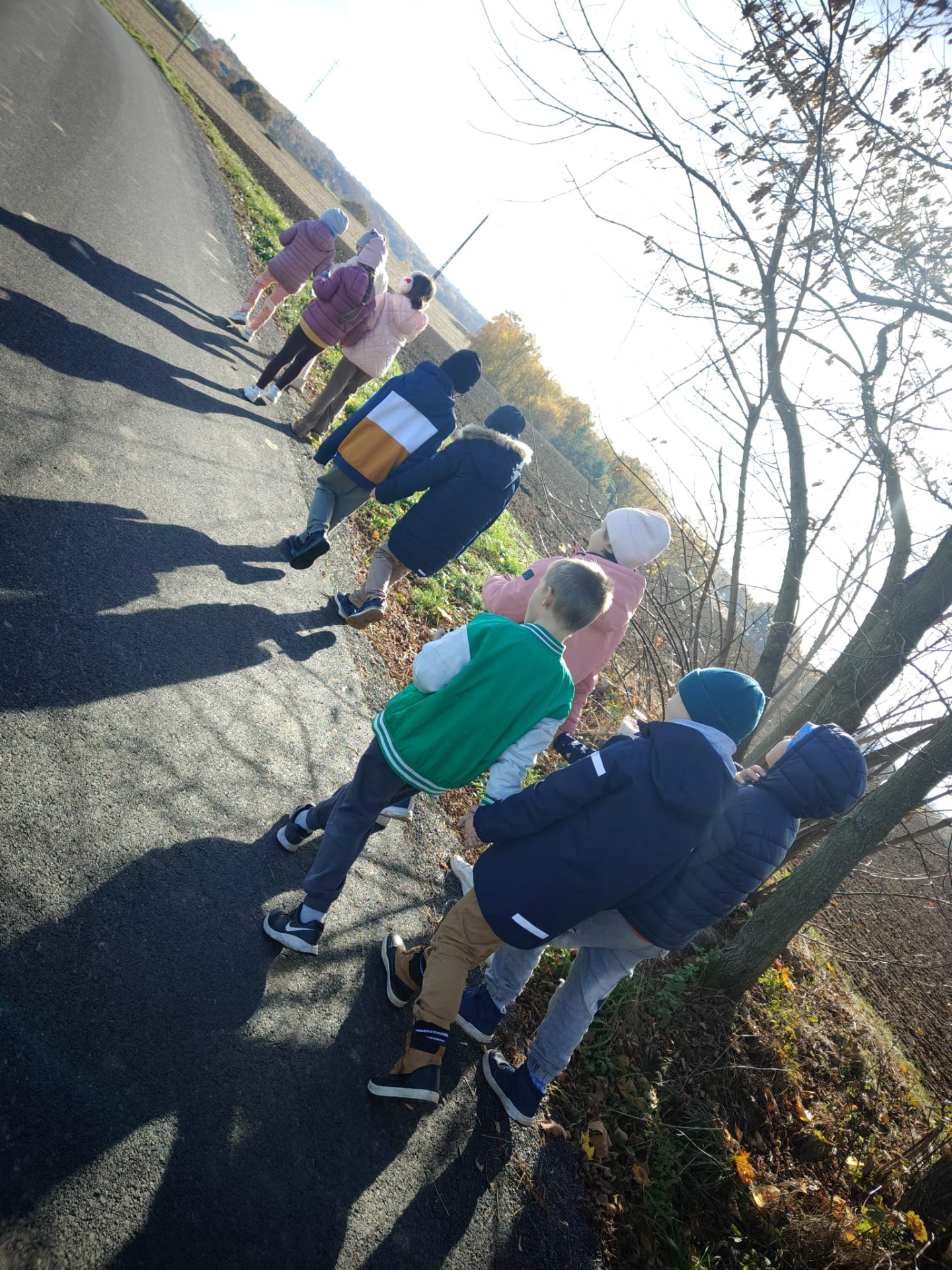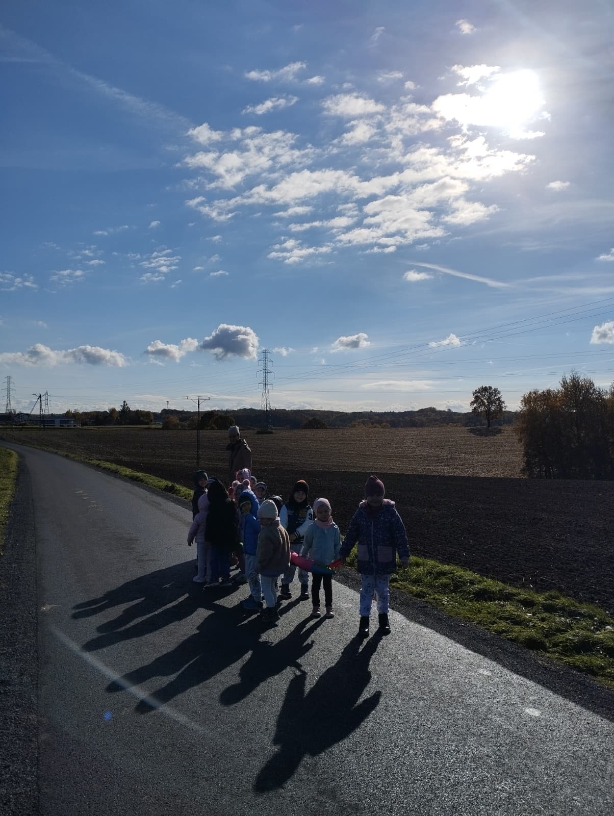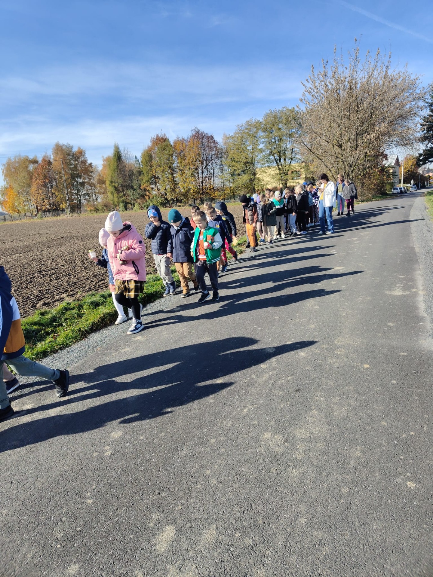 W tym tygodniu uczniowie klas 1–3 wraz z dziećmi z przedszkola udali się na krótką wycieczkę do pobliskiego przydrożnego krzyża oraz obelisku poświęconego Janowi Pawłowi II. Wspólne wyjście miało na celu kształtowanie pamięci o ważnych miejscach naszej lokalnej historii oraz rozwijanie postawy szacunku i refleksji.