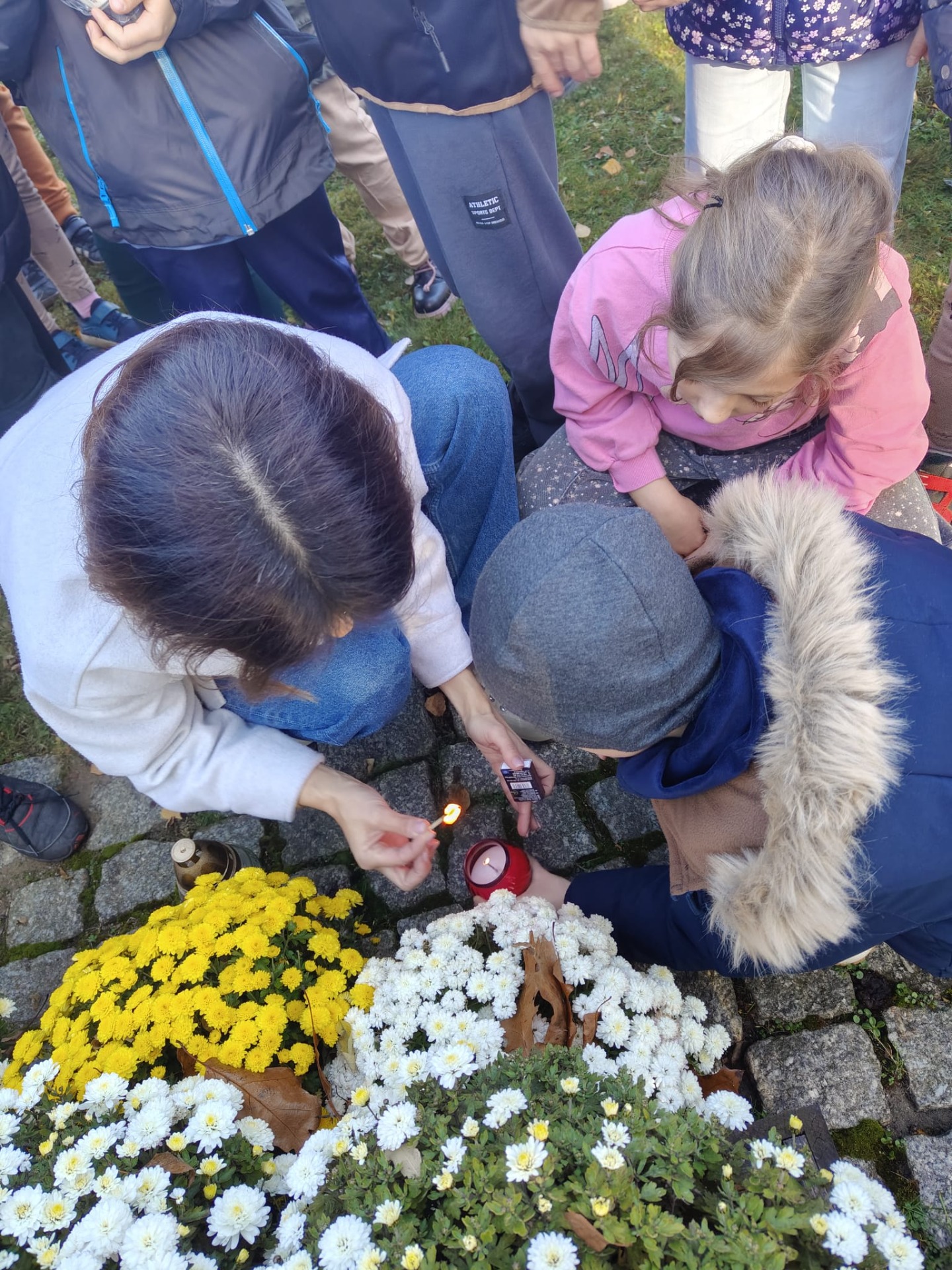 Dzieci, pod opieką nauczycieli, zapaliły znicze, oddając hołd i chwilę zadumy. Była to również okazja do rozmowy o wartościach, tradycjach i znaczeniu pamięci o osobach, które odegrały ważną rolę w życiu wielu ludzi.