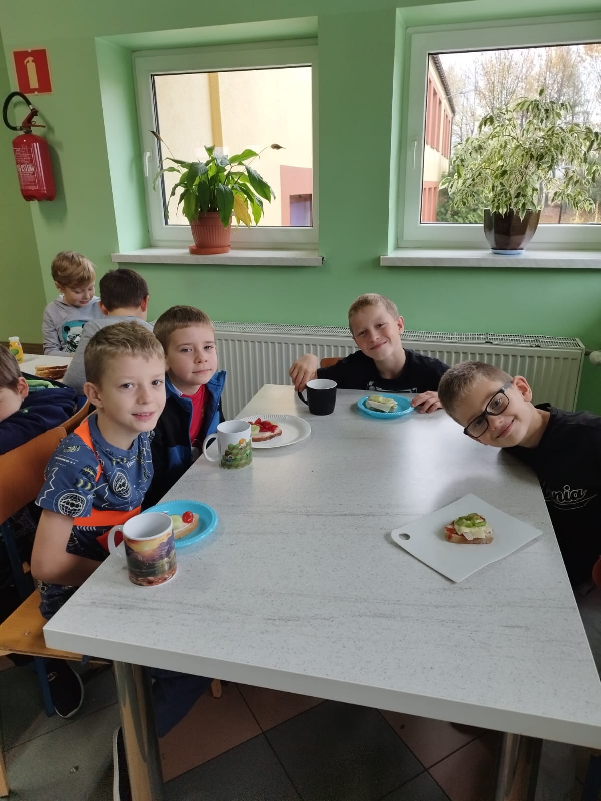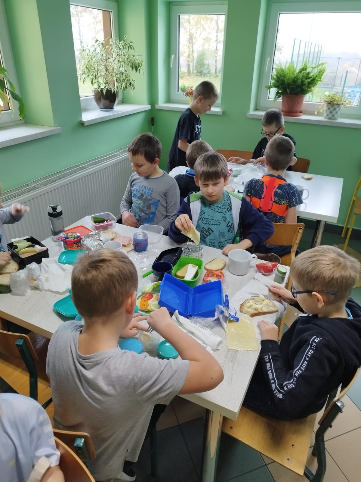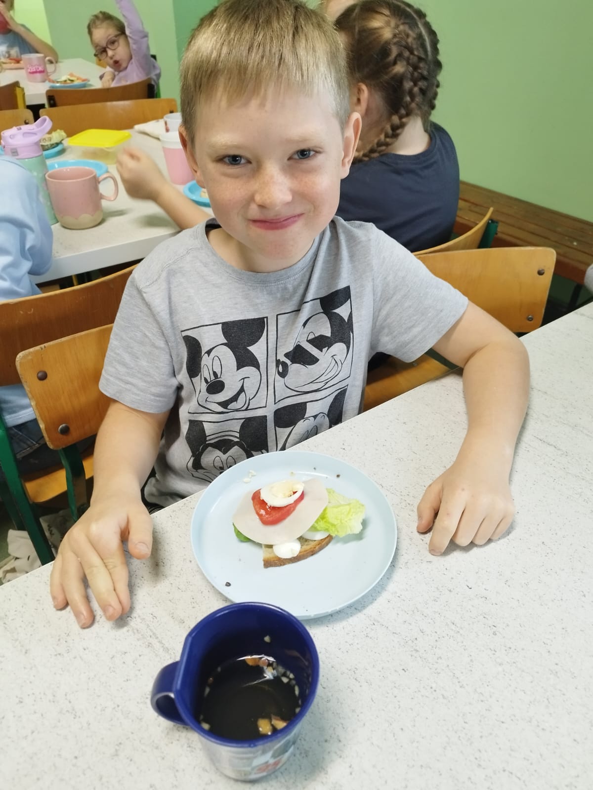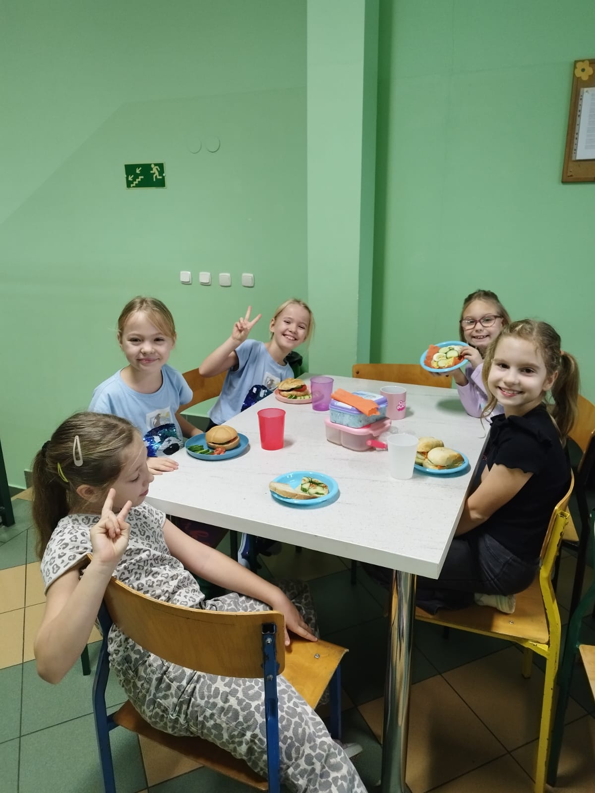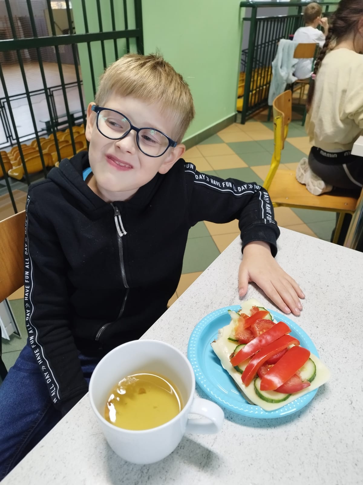 W poniedziałek, 3 listopada, uczniowie klasy drugiej świętowali Dzień Kanapki. Tego dnia na szkolnej stołówce unosiły się zapachy świeżego pieczywa, warzyw i aromatycznej, jesiennej herbaty. Dzieci z ogromnym zaangażowaniem przygotowywały swoje własne, zdrowe kanapki. Każdy mógł samodzielnie skomponować ulubione połączenie smaków, pamiętając o obowiązkowym składniku – warzywie. Na stołach pojawiły się kolorowe pomidory, ogórki, papryka, sałata, szczypiorek, a także ser, wędliny i pasty kanapkowe. Dzięki temu powstały prawdziwe kanapkowe arcydzieła, które nie tylko pięknie wyglądały, ale też znakomicie smakowały. Po wspólnym przygotowaniu kanapek uczniowie zasiedli do stołu, by wspólnie zjeść swoje dzieła i napić się rozgrzewającej jesiennej herbaty z miodem i cytryną. W trakcie posiłku nie zabrakło rozmów, śmiechu i dobrego humoru. To wyjątkowe wydarzenie stało się nie tylko okazją do przypomnienia zasad zdrowego odżywiania, ale również do zacieśniania klasowych więzi i budowania koleżeńskiej atmosfery. Dzieci uczyły się współpracy, dzielenia się i wzajemnej pomocy – bo nic tak nie łączy, jak wspólne gotowanie i wspólne jedzenie. Na koniec wszyscy zgodnie stwierdzili, że taka lekcja smaku i przyjaźni mogłaby odbywać się częściej!