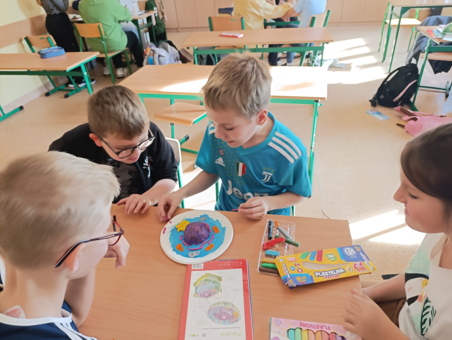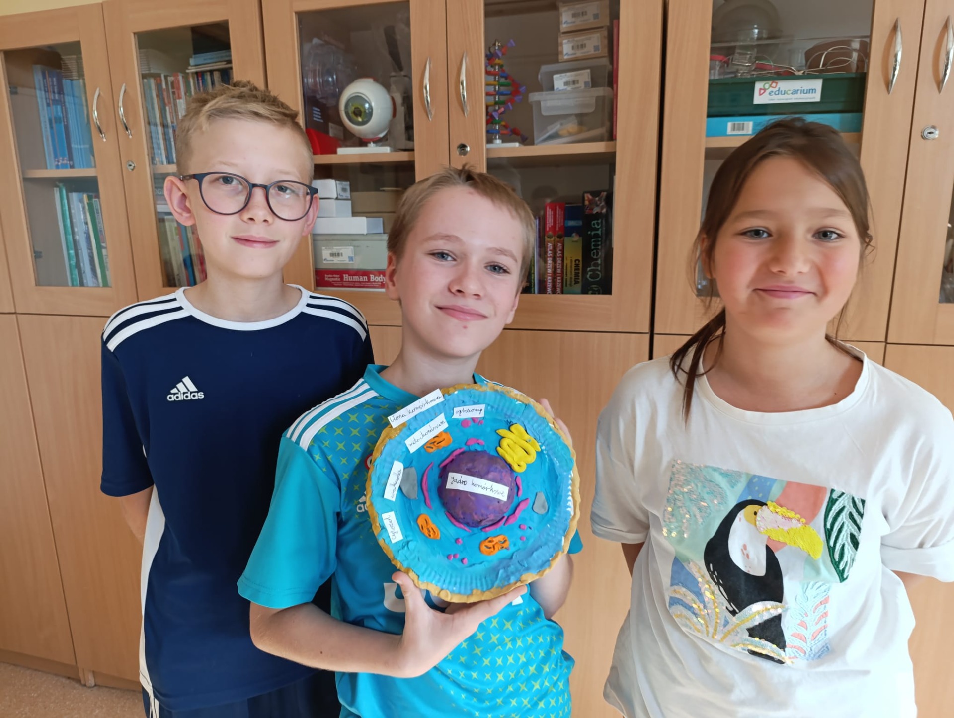 Podczas ostatnich zajęć kreatywnych uczniowie klasy piątej w praktyczny i pomysłowy sposób utrwalali materiał z biologii dotyczący podstawowych jednostek życia – komórek. Zadaniem uczniów było stworzenie modeli trzech typów komórek: roślinnej, zwierzęcej oraz bakteryjnej. Do budowy piątoklasiści wykorzystywali różne materiały: plastelinę, tekturę, styropian, bibułę. Praca miała na celu nie tylko wizualizację skomplikowanych struktur, ale również zrozumienie różnic między nimi, co jest podstawą dalszej edukacji biologicznej.