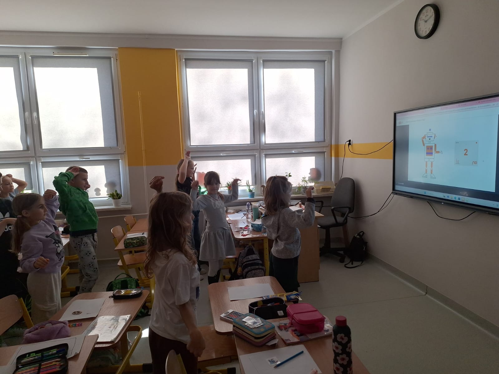 Podczas zajęć dzieci zastanawiały się, ile czasu każdego dnia spędzają przed ekranem oraz jakie emocje towarzyszą im po dłuższym korzystaniu z urządzeń cyfrowych. Dzięki aktywnym ćwiczeniom i rozmowie o codziennych nawykach uczniowie uczyli się rozpoznawać objawy nadużywania internetu.