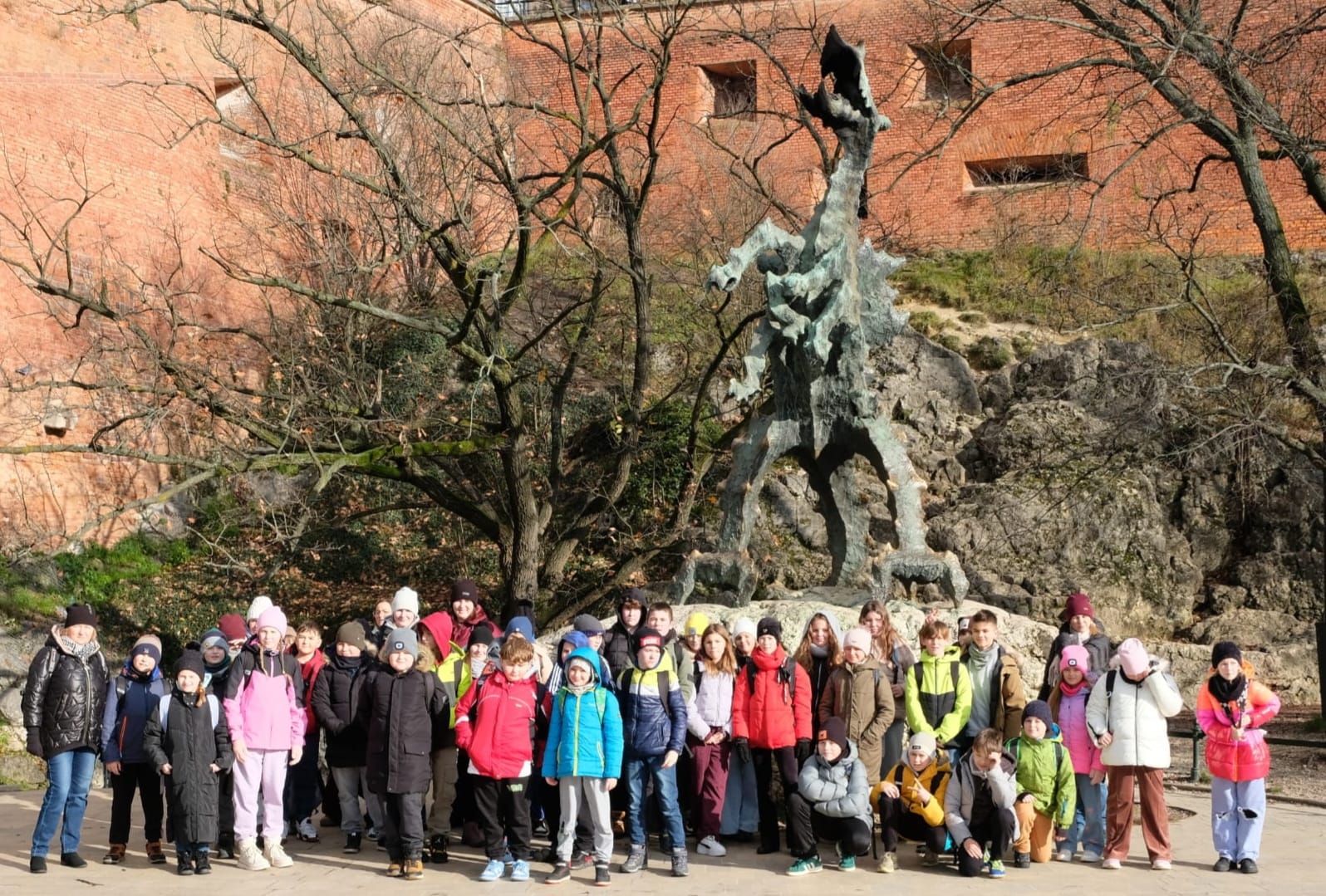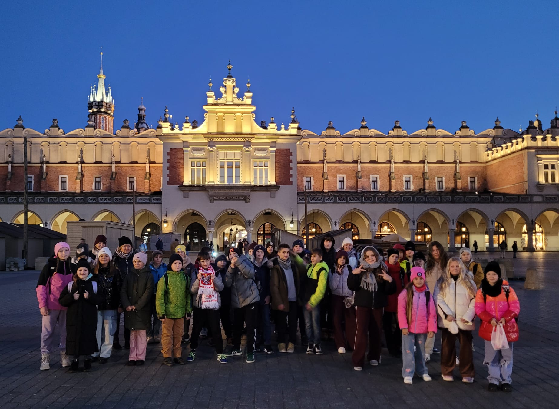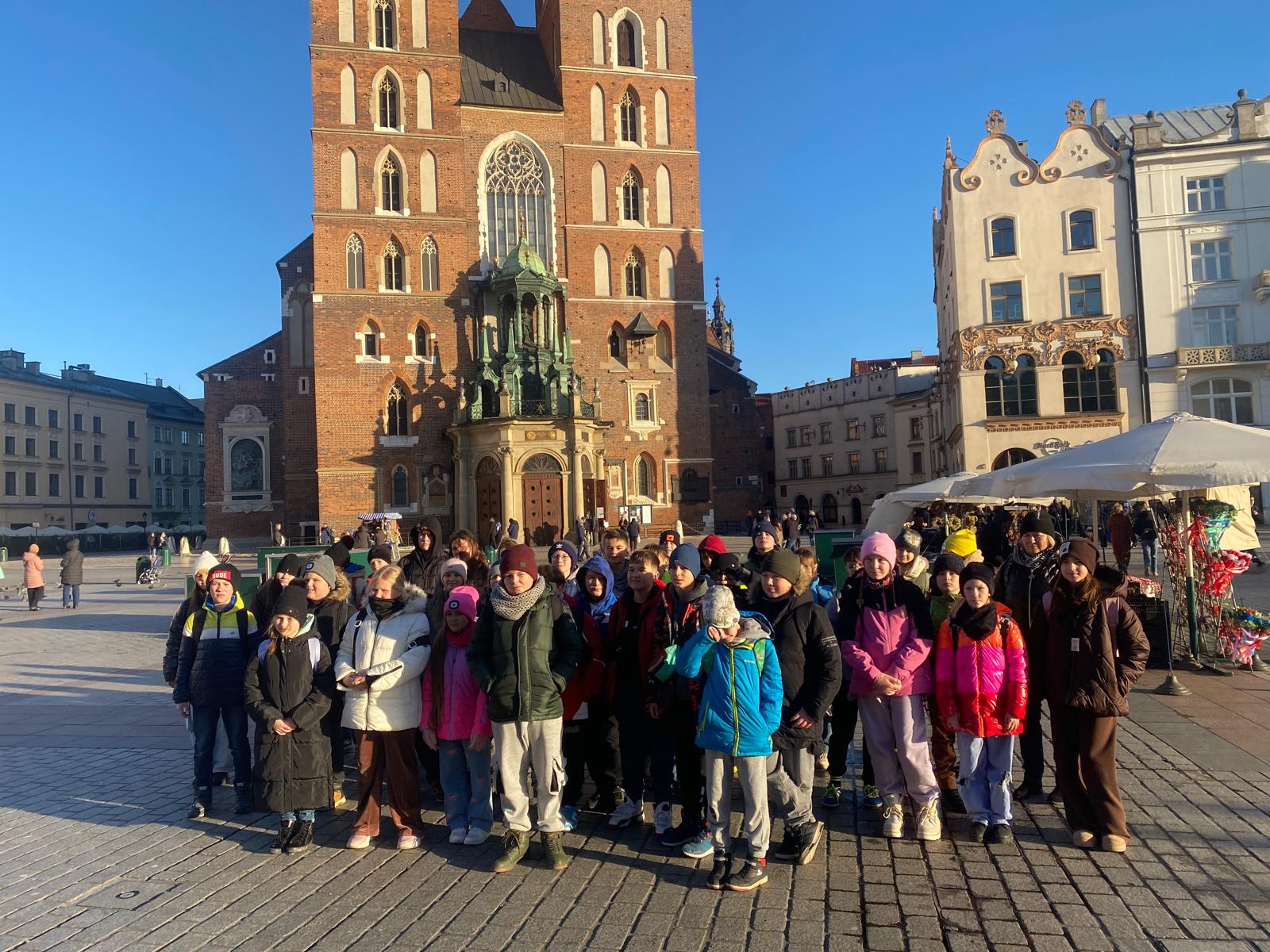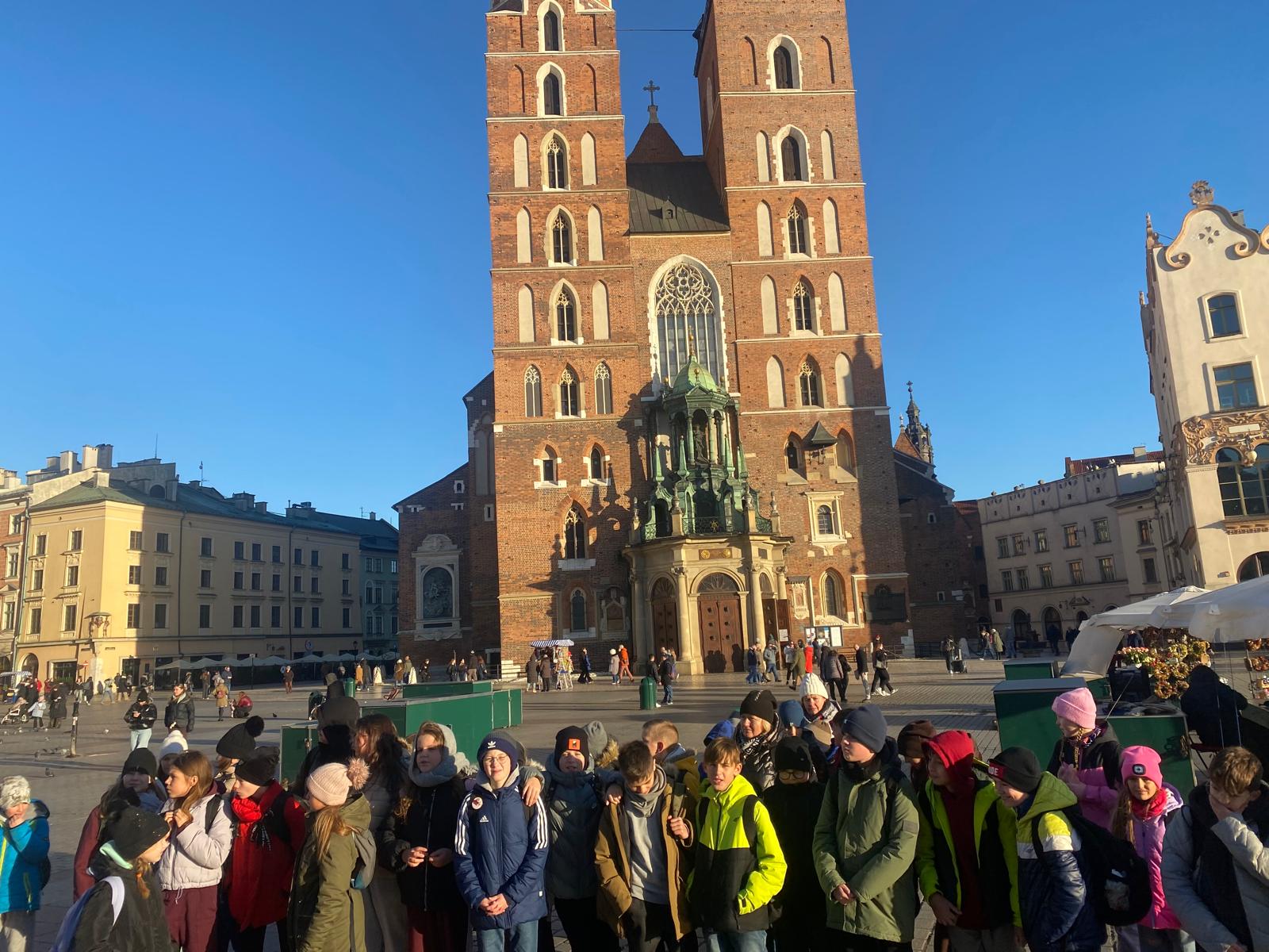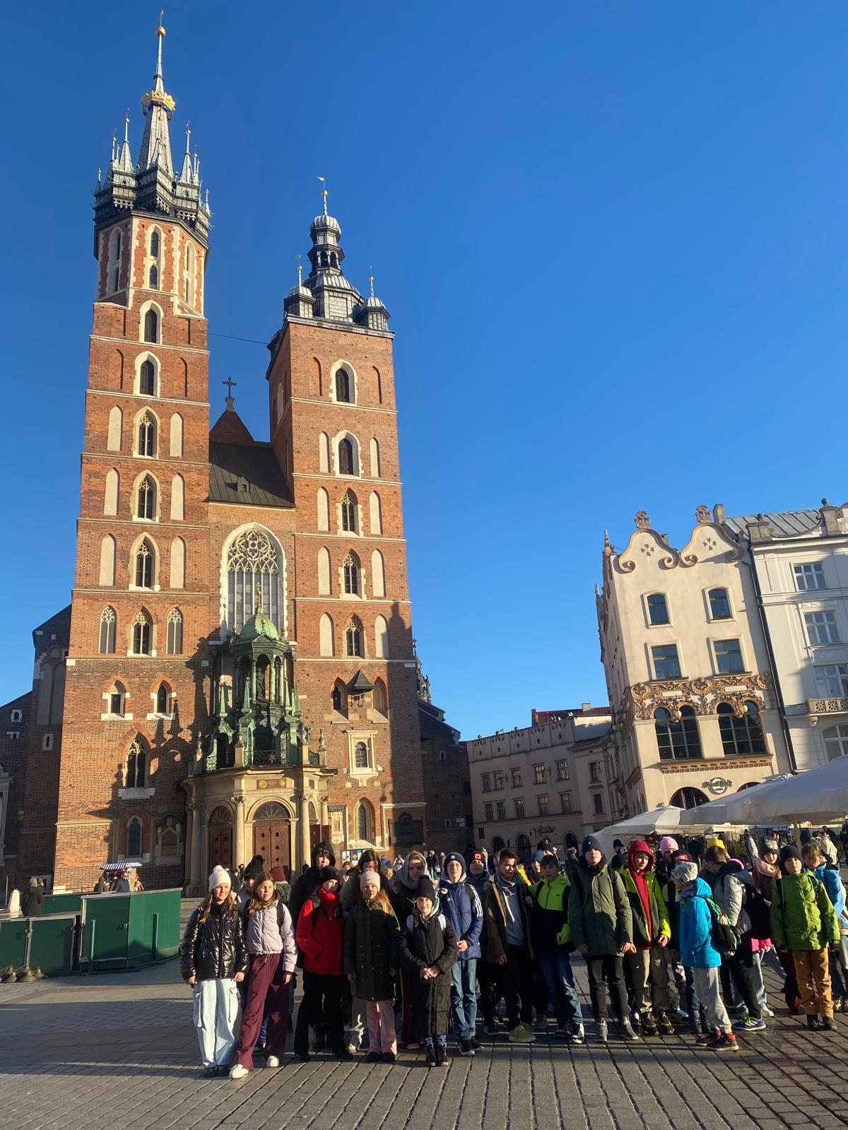 Wycieczka do Krakowa była wyczekiwana z wielką niecierpliwością i dreszczykiem emocji. Wyjazd planowany był na wczesne godziny poranne, a powrót na wieczór. W programie był teatr, spacer śladami Jana Pawła II, ceremonie królewskie na Wawelu, czy warsztaty malarskie w galerii sztuki w Sukiennicach. Dla czwarto – piąto – i szóstoklasistów zapowiadało się na wielką wyprawę. Zaopatrzeni w koce, poduszki, dużo prowiantu i ciepłą herbatę, kiedy inni spali, już około 5,30 na przystanku obok gminy spotkali się wszyscy uczestnicy wyjazdu. Podróż przebiegła bez problemów i już o 9.00 w teatrze „Groteska” rozpoczęła się przygoda p.t. „Tajemnice sceny”. Uczniowie stali się aktorami i mogli odegrać swoją własną sztukę teatralną. Po dwóch godzinach pełnych zabawy i śmiechu uczestnicy wycieczki wyruszyli szlakiem patrona szkoły Jana Pawła II, który przez prawie 40 lat mieszkał i pracował właśnie w Krakowie. Kolegiata św. Anny, Colegium Maius i Colegium Novum, pałac biskupi i Uniwersytet Papieski, ulica Kanonicza i Muzeum Archidiecezjalne te wszystkie miejsca kryją niezwykłe wydarzenia sprzed lat. W końcu udało się dotrzeć pod Zamek Królewski na Wawelu, którego od lat strzeże Smok Wawelski. Na powitanie grupy nawet zionął ogniem. Kolejny etap podróży to zwiedzanie komnat, lekcja o ceremoniach królewskich i wizyta w skarbcu zwieńczona kontemplacją słynnego królewskiego „szczerbca”. Po wyjściu z komnat olśniło wszystkich słońce, złożyło się akurat tak, że kolejną atrakcją były warsztaty malarskie właśnie o tym, czy słońce jest zawsze jednakowo żółte? W galerii uczniowie bardzo szybko dostrzegli, że barwy zmieniają się wielokrotnie w ciągu dnia i nocy. Powoli zaczęło odzywać się zmęczenie. Jedynym sposobem na ożywienie był posiłek i zakup pamiątek, a że w Sukiennicach ich nie brakuje, to zakupy trwały kilka minut. Największą atrakcją stały się aksamitne gołębie nawiązujące do tych żywych, spacerujących po rynku. Zapadł zmrok. Ostatni etap wycieczki to spacer szlakiem legionów ulicą Piłsudskiego pod ich pomnik, aż do Muzeum Narodowego. W grupie wycieczkowiczów było wielu kibiców piłkarskich i ostatnim obiektem tego dnia, który wypatrzyli, był stadion Cracovii, ulubionego klubu Karola Wojtyły. Niedługo potem podjechał autobus i resztką sił, dzielni uczniowie dobiegli do drzwi i wyruszyli w drogę do domu. Przed godziną 21 wszyscy szczęśliwie dotarli do celu.