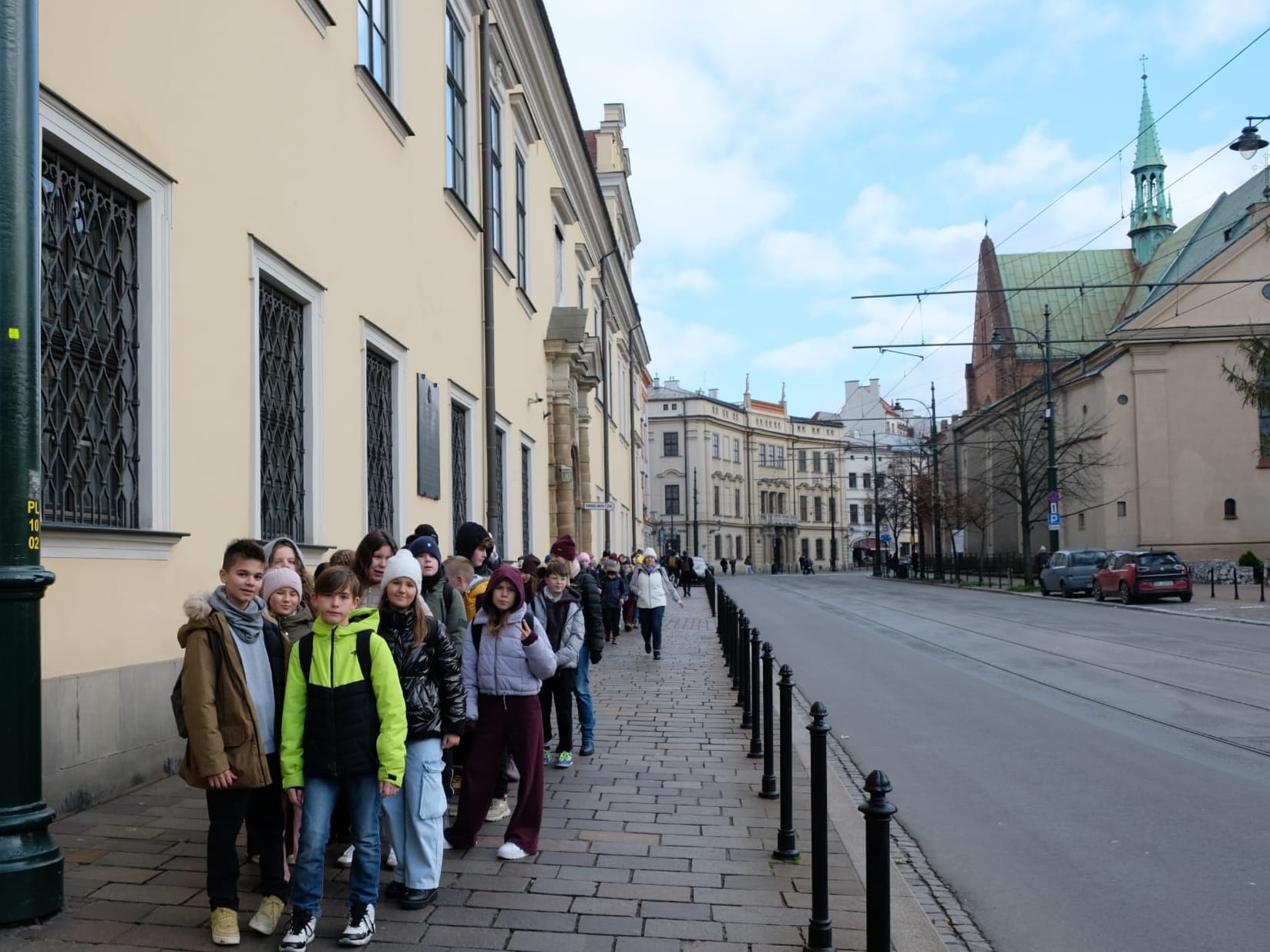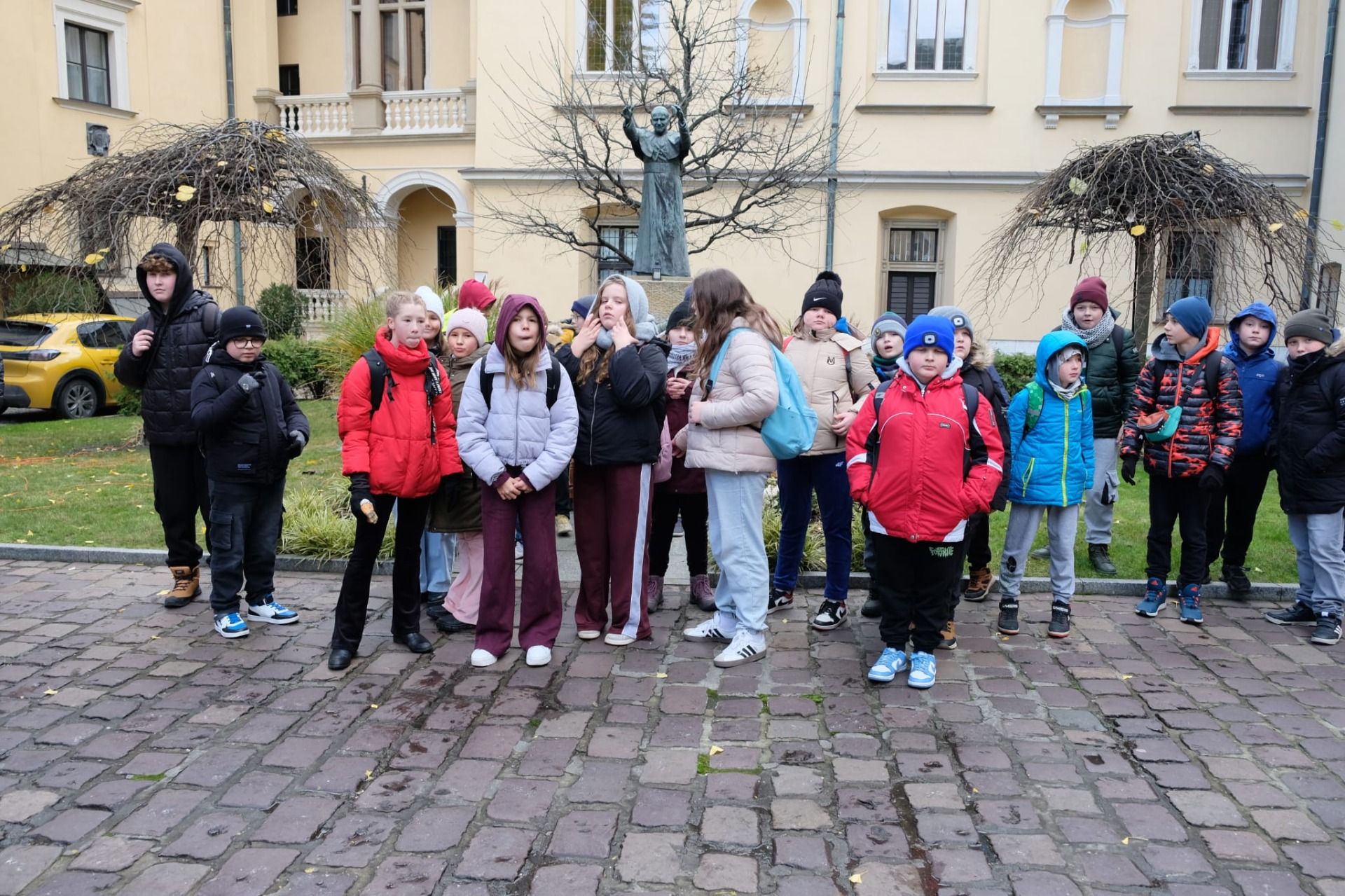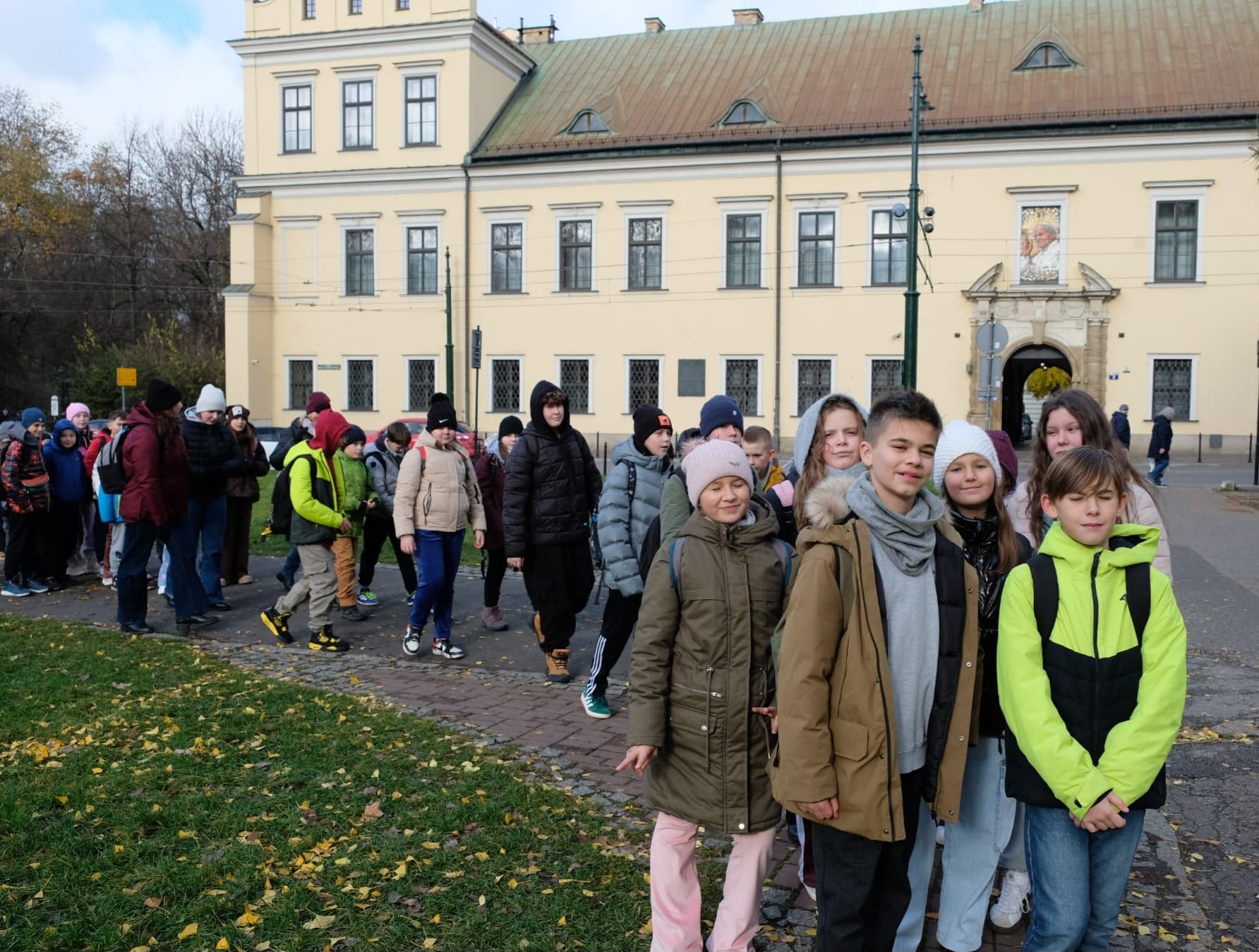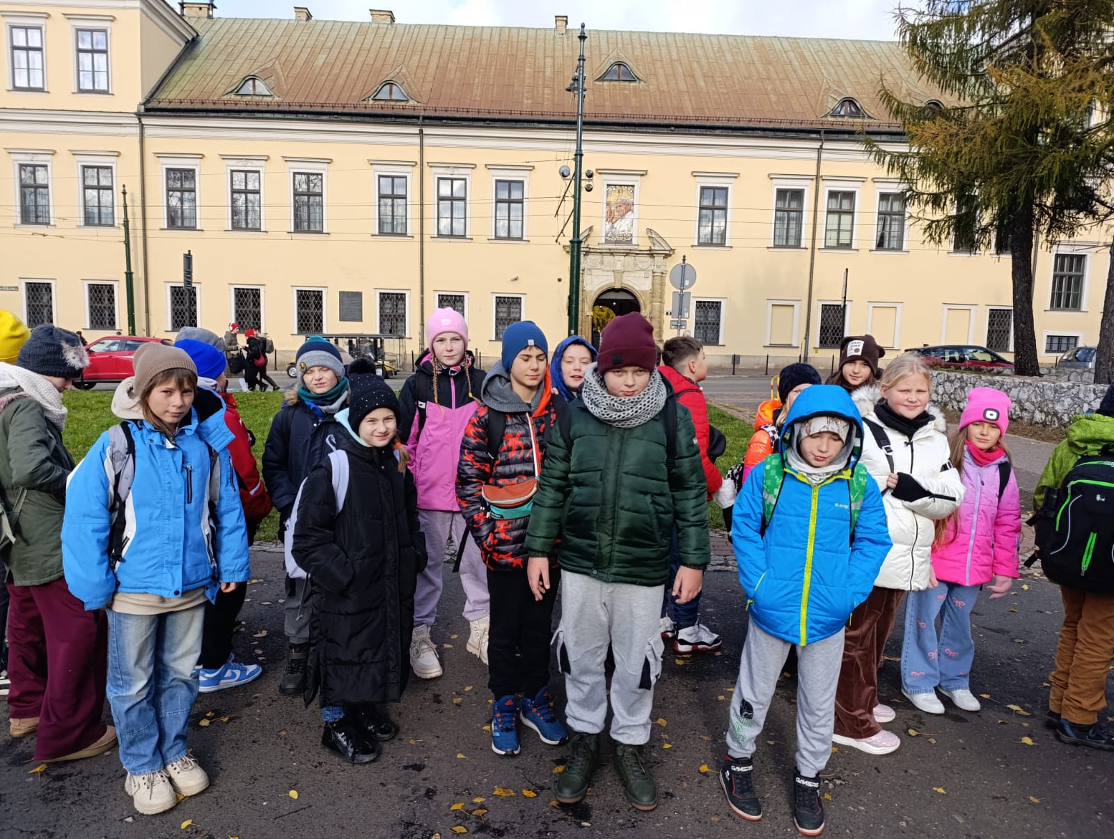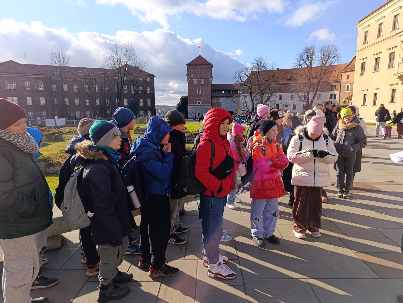 Wycieczka do Krakowa była wyczekiwana z wielką niecierpliwością i dreszczykiem emocji. Wyjazd planowany był na wczesne godziny poranne, a powrót na wieczór. W programie był teatr, spacer śladami Jana Pawła II, ceremonie królewskie na Wawelu, czy warsztaty malarskie w galerii sztuki w Sukiennicach. Dla czwarto – piąto – i szóstoklasistów zapowiadało się na wielką wyprawę. Zaopatrzeni w koce, poduszki, dużo prowiantu i ciepłą herbatę, kiedy inni spali, już około 5,30 na przystanku obok gminy spotkali się wszyscy uczestnicy wyjazdu. Podróż przebiegła bez problemów i już o 9.00 w teatrze „Groteska” rozpoczęła się przygoda p.t. „Tajemnice sceny”. Uczniowie stali się aktorami i mogli odegrać swoją własną sztukę teatralną. Po dwóch godzinach pełnych zabawy i śmiechu uczestnicy wycieczki wyruszyli szlakiem patrona szkoły Jana Pawła II, który przez prawie 40 lat mieszkał i pracował właśnie w Krakowie. Kolegiata św. Anny, Colegium Maius i Colegium Novum, pałac biskupi i Uniwersytet Papieski, ulica Kanonicza i Muzeum Archidiecezjalne te wszystkie miejsca kryją niezwykłe wydarzenia sprzed lat. W końcu udało się dotrzeć pod Zamek Królewski na Wawelu, którego od lat strzeże Smok Wawelski. Na powitanie grupy nawet zionął ogniem. Kolejny etap podróży to zwiedzanie komnat, lekcja o ceremoniach królewskich i wizyta w skarbcu zwieńczona kontemplacją słynnego królewskiego „szczerbca”. Po wyjściu z komnat olśniło wszystkich słońce, złożyło się akurat tak, że kolejną atrakcją były warsztaty malarskie właśnie o tym, czy słońce jest zawsze jednakowo żółte? W galerii uczniowie bardzo szybko dostrzegli, że barwy zmieniają się wielokrotnie w ciągu dnia i nocy. Powoli zaczęło odzywać się zmęczenie. Jedynym sposobem na ożywienie był posiłek i zakup pamiątek, a że w Sukiennicach ich nie brakuje, to zakupy trwały kilka minut. Największą atrakcją stały się aksamitne gołębie nawiązujące do tych żywych, spacerujących po rynku. Zapadł zmrok. Ostatni etap wycieczki to spacer szlakiem legionów ulicą Piłsudskiego pod ich pomnik, aż do Muzeum Narodowego. W grupie wycieczkowiczów było wielu kibiców piłkarskich i ostatnim obiektem tego dnia, który wypatrzyli, był stadion Cracovii, ulubionego klubu Karola Wojtyły. Niedługo potem podjechał autobus i resztką sił, dzielni uczniowie dobiegli do drzwi i wyruszyli w drogę do domu. Przed godziną 21 wszyscy szczęśliwie dotarli do celu.