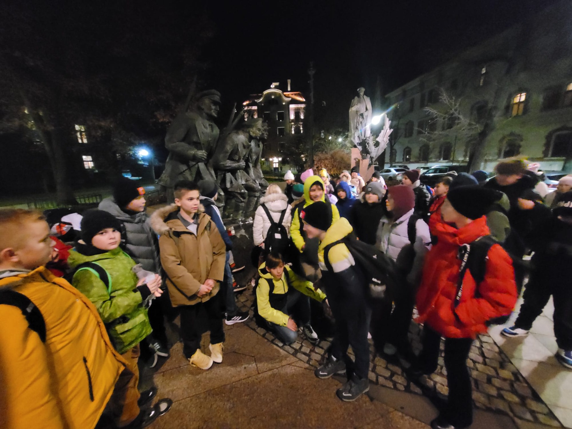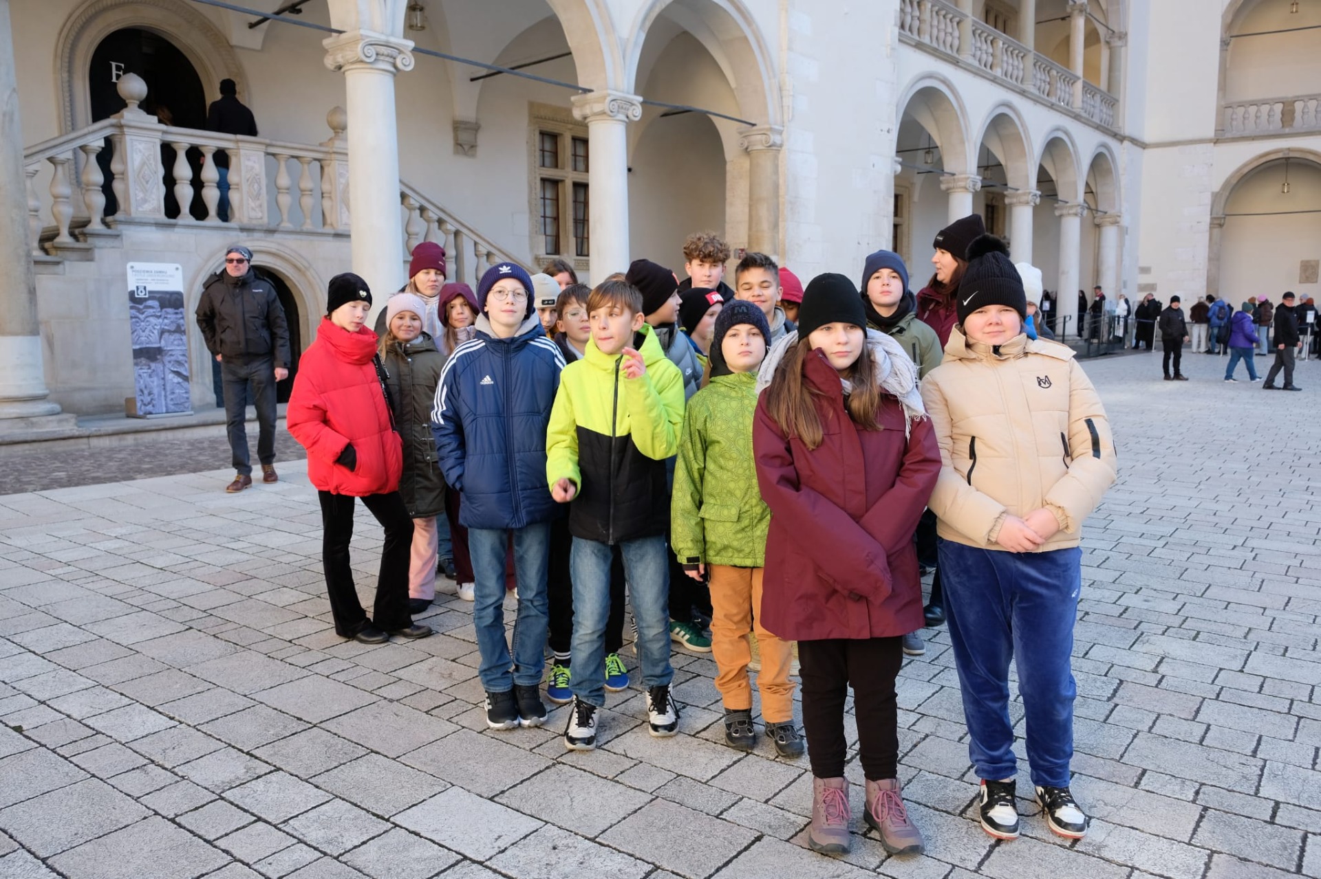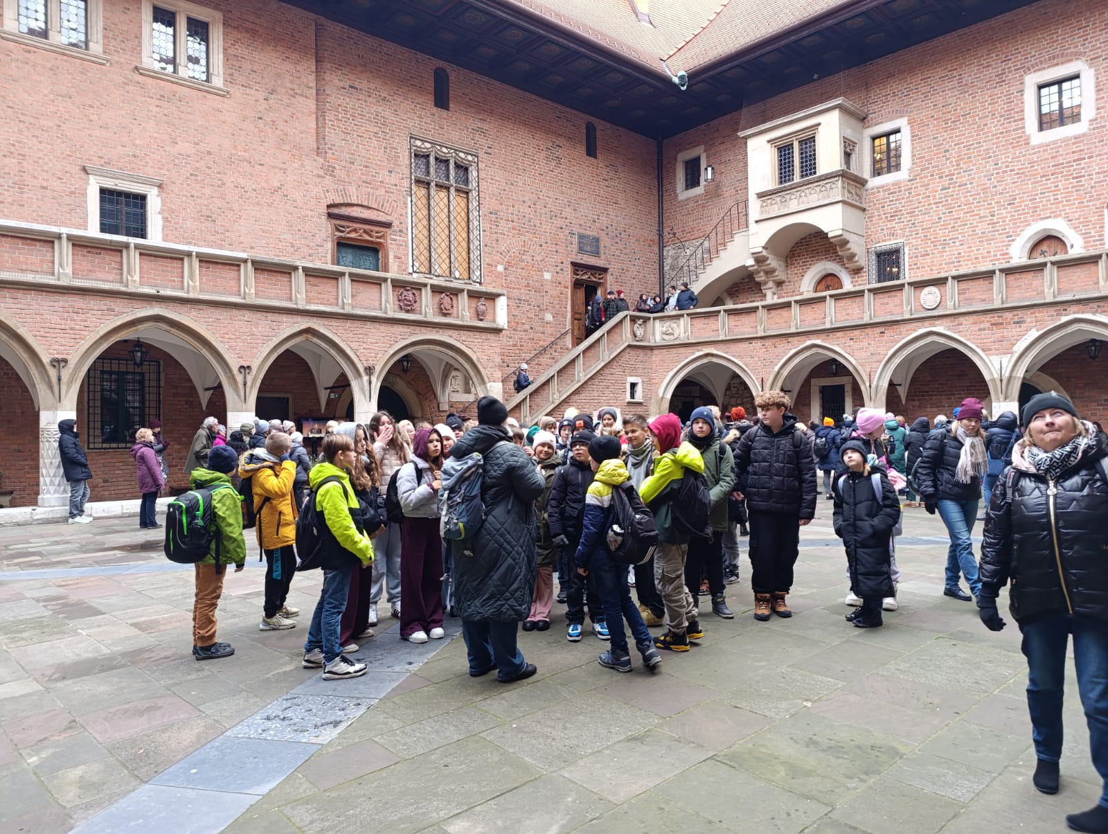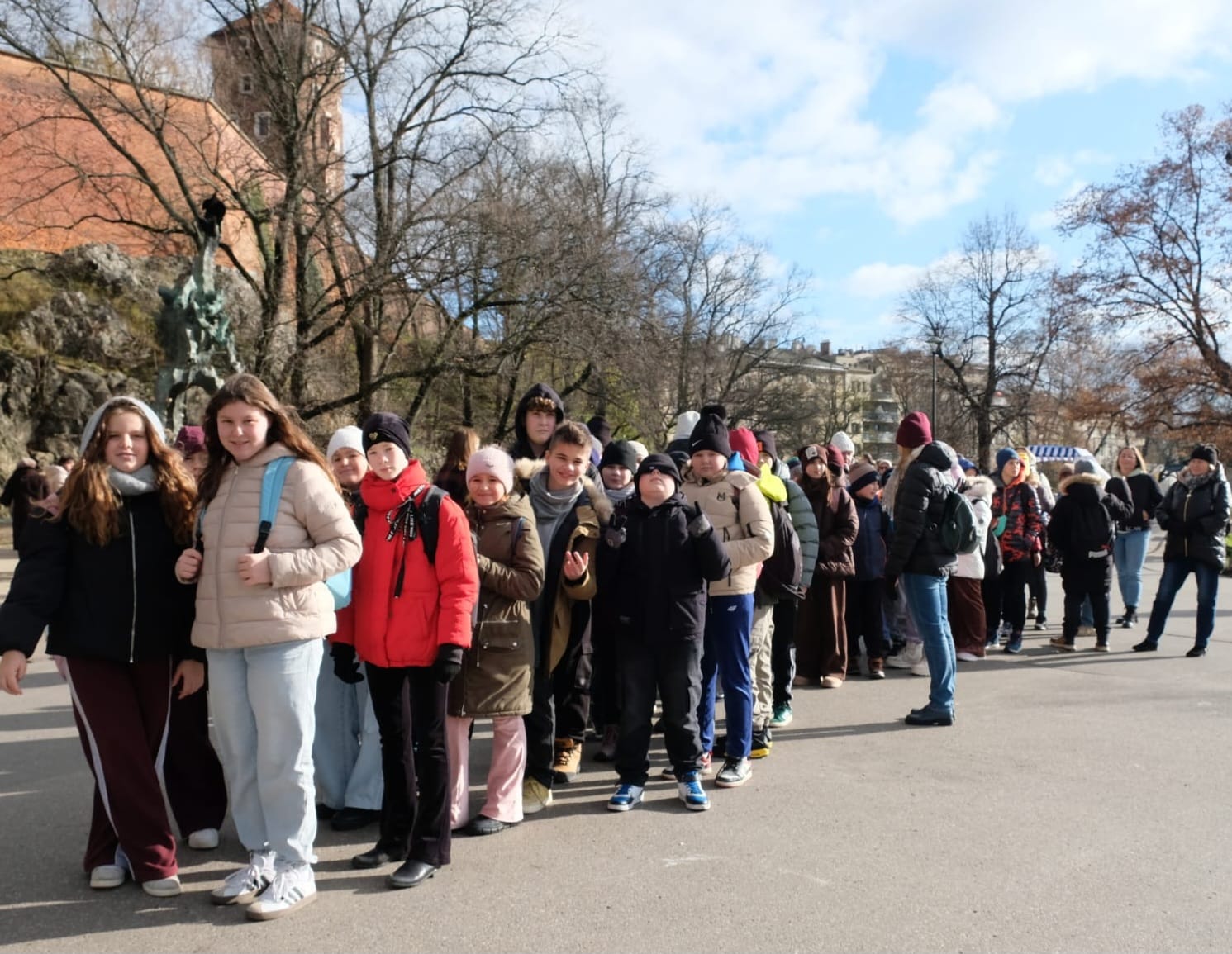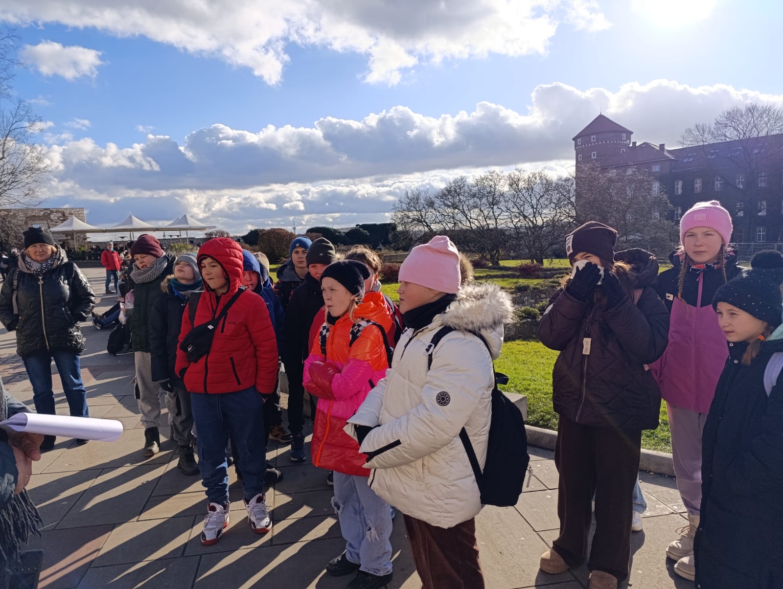 Wycieczka do Krakowa była wyczekiwana z wielką niecierpliwością i dreszczykiem emocji. Wyjazd planowany był na wczesne godziny poranne, a powrót na wieczór. W programie był teatr, spacer śladami Jana Pawła II, ceremonie królewskie na Wawelu, czy warsztaty malarskie w galerii sztuki w Sukiennicach. Dla czwarto – piąto – i szóstoklasistów zapowiadało się na wielką wyprawę. Zaopatrzeni w koce, poduszki, dużo prowiantu i ciepłą herbatę, kiedy inni spali, już około 5,30 na przystanku obok gminy spotkali się wszyscy uczestnicy wyjazdu. Podróż przebiegła bez problemów i już o 9.00 w teatrze „Groteska” rozpoczęła się przygoda p.t. „Tajemnice sceny”. Uczniowie stali się aktorami i mogli odegrać swoją własną sztukę teatralną. Po dwóch godzinach pełnych zabawy i śmiechu uczestnicy wycieczki wyruszyli szlakiem patrona szkoły Jana Pawła II, który przez prawie 40 lat mieszkał i pracował właśnie w Krakowie. Kolegiata św. Anny, Colegium Maius i Colegium Novum, pałac biskupi i Uniwersytet Papieski, ulica Kanonicza i Muzeum Archidiecezjalne te wszystkie miejsca kryją niezwykłe wydarzenia sprzed lat. W końcu udało się dotrzeć pod Zamek Królewski na Wawelu, którego od lat strzeże Smok Wawelski. Na powitanie grupy nawet zionął ogniem. Kolejny etap podróży to zwiedzanie komnat, lekcja o ceremoniach królewskich i wizyta w skarbcu zwieńczona kontemplacją słynnego królewskiego „szczerbca”. Po wyjściu z komnat olśniło wszystkich słońce, złożyło się akurat tak, że kolejną atrakcją były warsztaty malarskie właśnie o tym, czy słońce jest zawsze jednakowo żółte? W galerii uczniowie bardzo szybko dostrzegli, że barwy zmieniają się wielokrotnie w ciągu dnia i nocy. Powoli zaczęło odzywać się zmęczenie. Jedynym sposobem na ożywienie był posiłek i zakup pamiątek, a że w Sukiennicach ich nie brakuje, to zakupy trwały kilka minut. Największą atrakcją stały się aksamitne gołębie nawiązujące do tych żywych, spacerujących po rynku. Zapadł zmrok. Ostatni etap wycieczki to spacer szlakiem legionów ulicą Piłsudskiego pod ich pomnik, aż do Muzeum Narodowego. W grupie wycieczkowiczów było wielu kibiców piłkarskich i ostatnim obiektem tego dnia, który wypatrzyli, był stadion Cracovii, ulubionego klubu Karola Wojtyły. Niedługo potem podjechał autobus i resztką sił, dzielni uczniowie dobiegli do drzwi i wyruszyli w drogę do domu. Przed godziną 21 wszyscy szczęśliwie dotarli do celu.