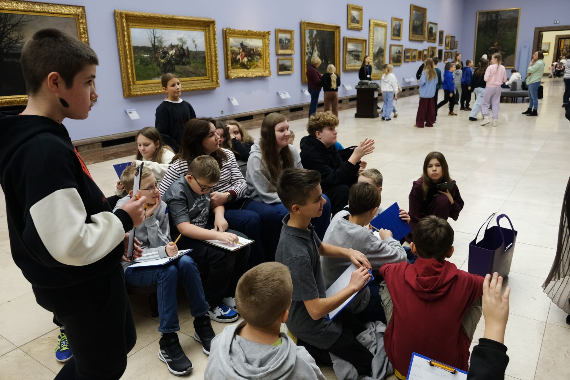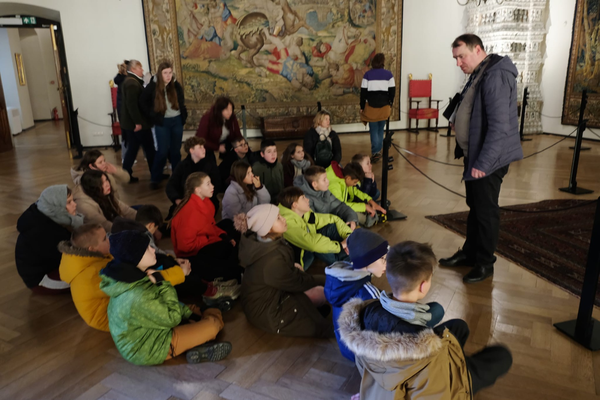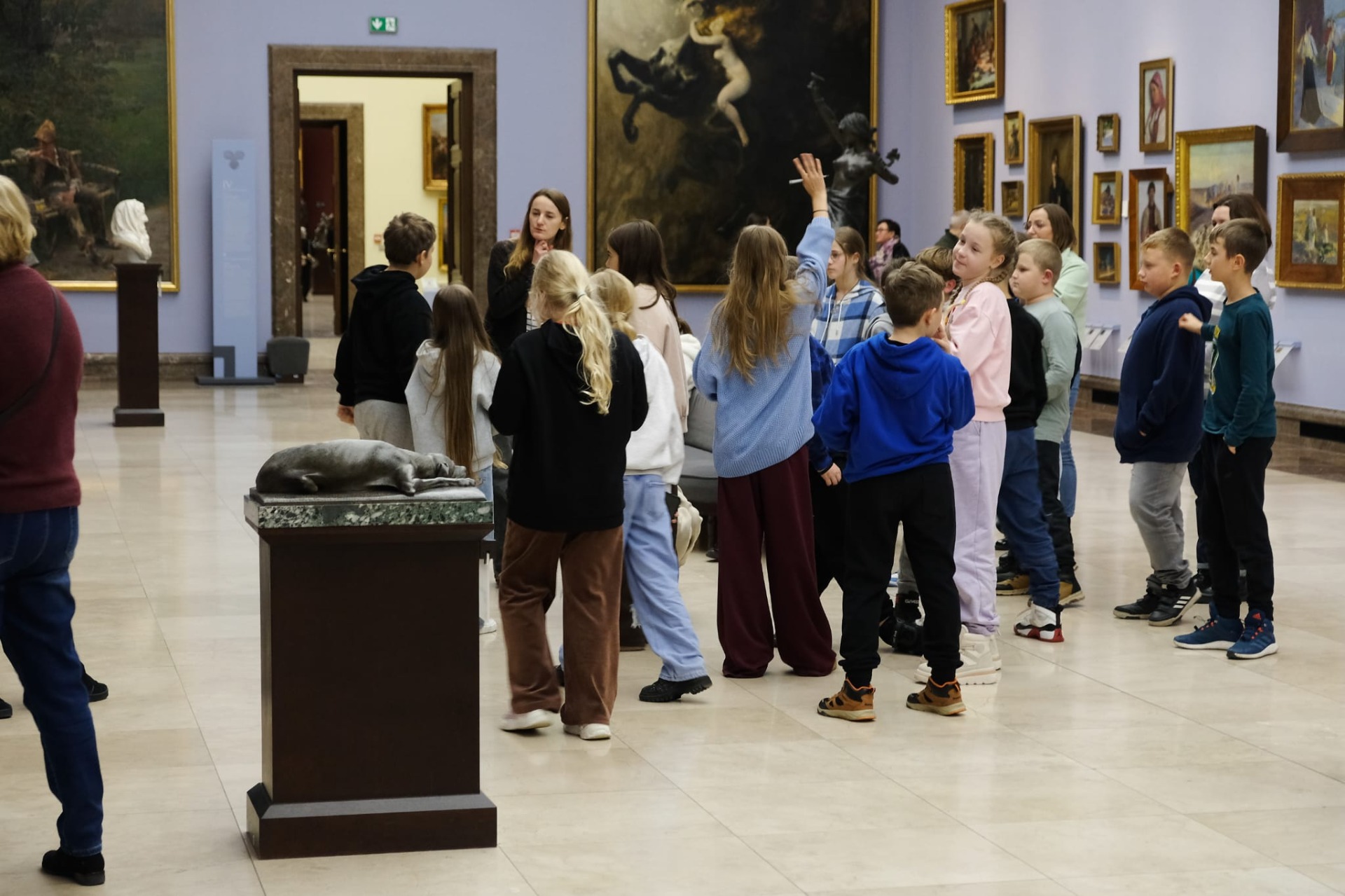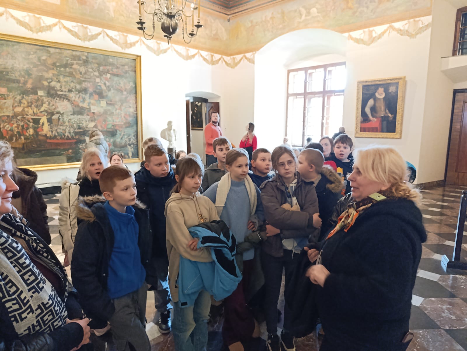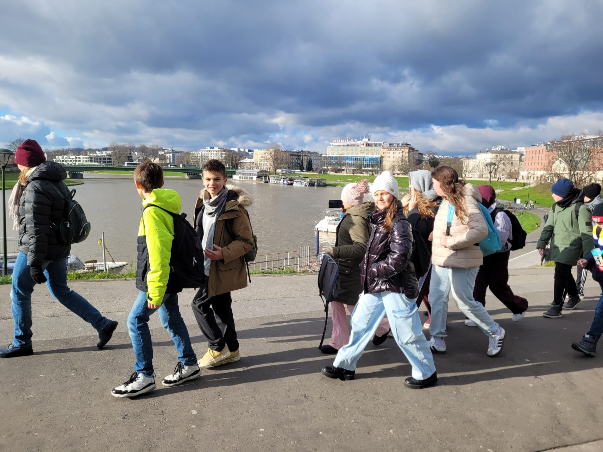 Wycieczka do Krakowa była wyczekiwana z wielką niecierpliwością i dreszczykiem emocji. Wyjazd planowany był na wczesne godziny poranne, a powrót na wieczór. W programie był teatr, spacer śladami Jana Pawła II, ceremonie królewskie na Wawelu, czy warsztaty malarskie w galerii sztuki w Sukiennicach. Dla czwarto – piąto – i szóstoklasistów zapowiadało się na wielką wyprawę. Zaopatrzeni w koce, poduszki, dużo prowiantu i ciepłą herbatę, kiedy inni spali, już około 5,30 na przystanku obok gminy spotkali się wszyscy uczestnicy wyjazdu. Podróż przebiegła bez problemów i już o 9.00 w teatrze „Groteska” rozpoczęła się przygoda p.t. „Tajemnice sceny”. Uczniowie stali się aktorami i mogli odegrać swoją własną sztukę teatralną. Po dwóch godzinach pełnych zabawy i śmiechu uczestnicy wycieczki wyruszyli szlakiem patrona szkoły Jana Pawła II, który przez prawie 40 lat mieszkał i pracował właśnie w Krakowie. Kolegiata św. Anny, Colegium Maius i Colegium Novum, pałac biskupi i Uniwersytet Papieski, ulica Kanonicza i Muzeum Archidiecezjalne te wszystkie miejsca kryją niezwykłe wydarzenia sprzed lat. W końcu udało się dotrzeć pod Zamek Królewski na Wawelu, którego od lat strzeże Smok Wawelski. Na powitanie grupy nawet zionął ogniem. Kolejny etap podróży to zwiedzanie komnat, lekcja o ceremoniach królewskich i wizyta w skarbcu zwieńczona kontemplacją słynnego królewskiego „szczerbca”. Po wyjściu z komnat olśniło wszystkich słońce, złożyło się akurat tak, że kolejną atrakcją były warsztaty malarskie właśnie o tym, czy słońce jest zawsze jednakowo żółte? W galerii uczniowie bardzo szybko dostrzegli, że barwy zmieniają się wielokrotnie w ciągu dnia i nocy. Powoli zaczęło odzywać się zmęczenie. Jedynym sposobem na ożywienie był posiłek i zakup pamiątek, a że w Sukiennicach ich nie brakuje, to zakupy trwały kilka minut. Największą atrakcją stały się aksamitne gołębie nawiązujące do tych żywych, spacerujących po rynku. Zapadł zmrok. Ostatni etap wycieczki to spacer szlakiem legionów ulicą Piłsudskiego pod ich pomnik, aż do Muzeum Narodowego. W grupie wycieczkowiczów było wielu kibiców piłkarskich i ostatnim obiektem tego dnia, który wypatrzyli, był stadion Cracovii, ulubionego klubu Karola Wojtyły. Niedługo potem podjechał autobus i resztką sił, dzielni uczniowie dobiegli do drzwi i wyruszyli w drogę do domu. Przed godziną 21 wszyscy szczęśliwie dotarli do celu.