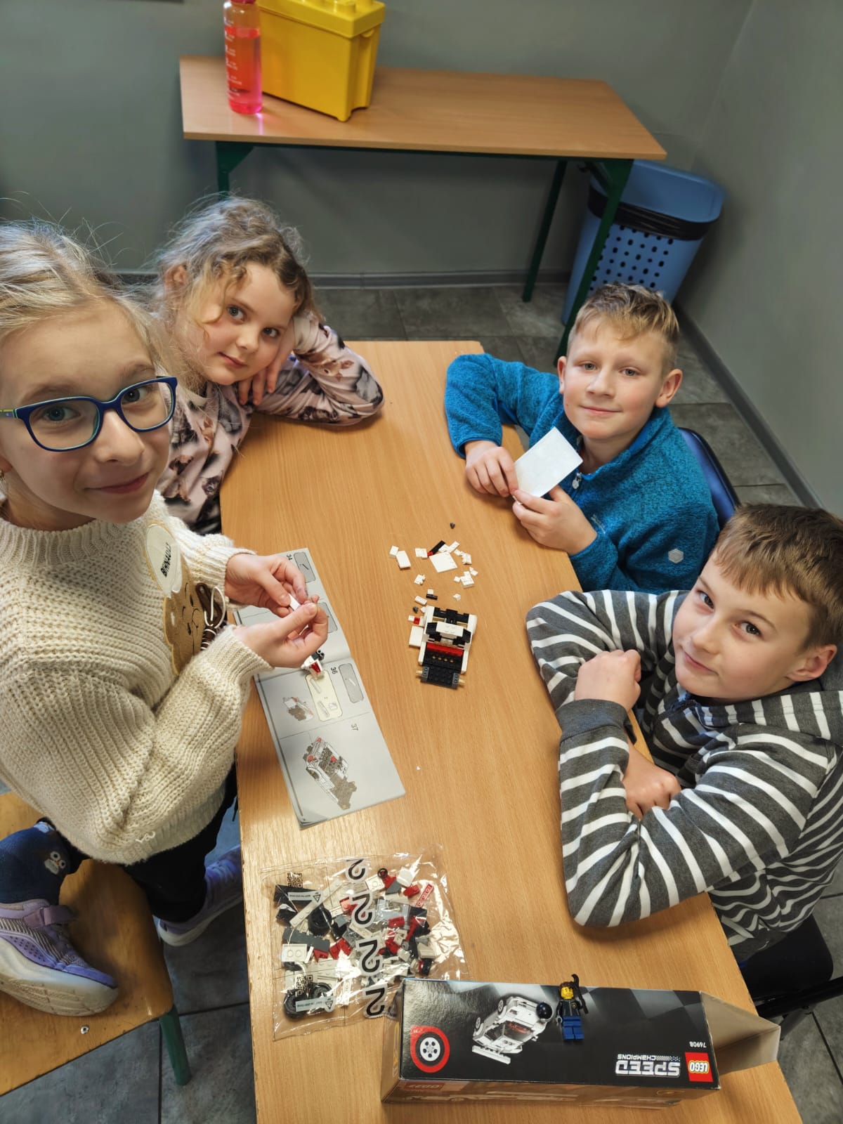 Podczas zajęć uczniowie pracują zarówno z gotowymi instrukcjami, jak i tworzą własne, niepowtarzalne konstrukcje. Dzięki temu mogą rozwijać nie tylko umiejętności techniczne, ale także wyobraźnię, kreatywne myślenie i współpracę w grupie. Każde spotkanie to okazja do odkrywania nowych rozwiązań, budowania coraz bardziej złożonych modeli oraz dzielenia się pomysłami z kolegami i koleżankami.