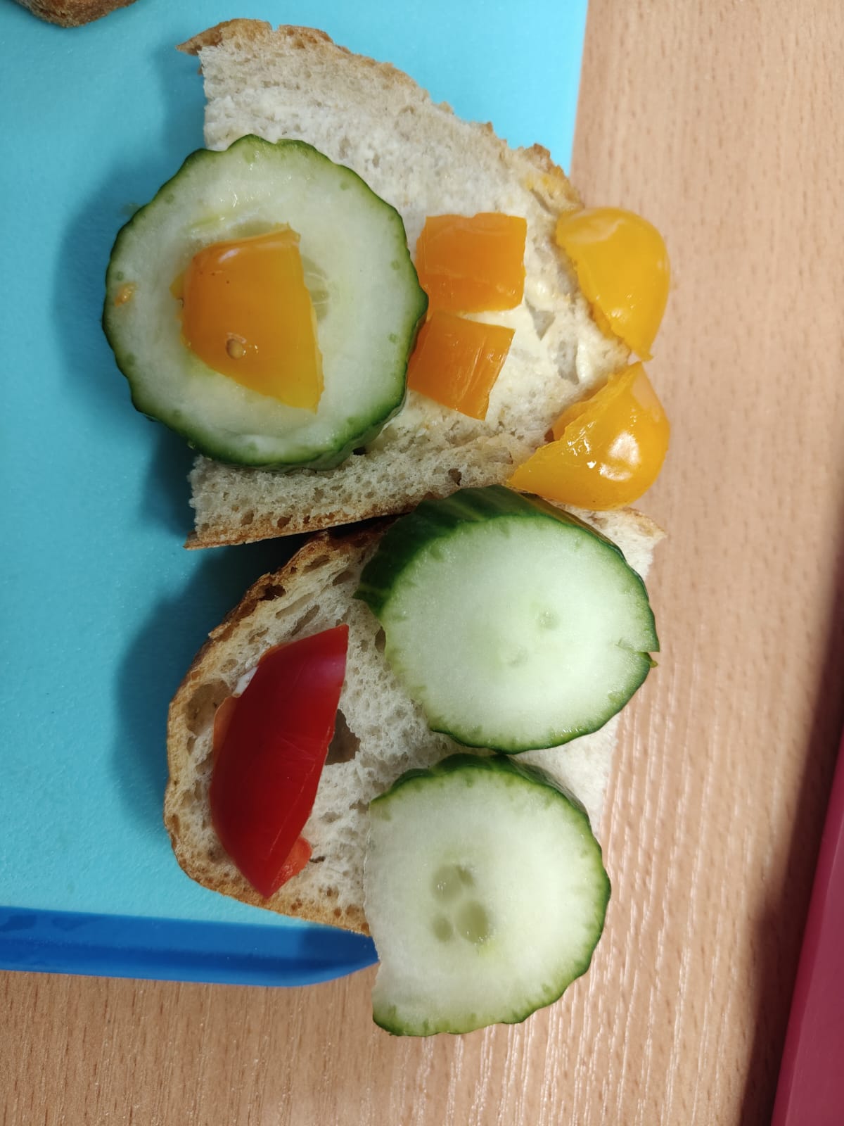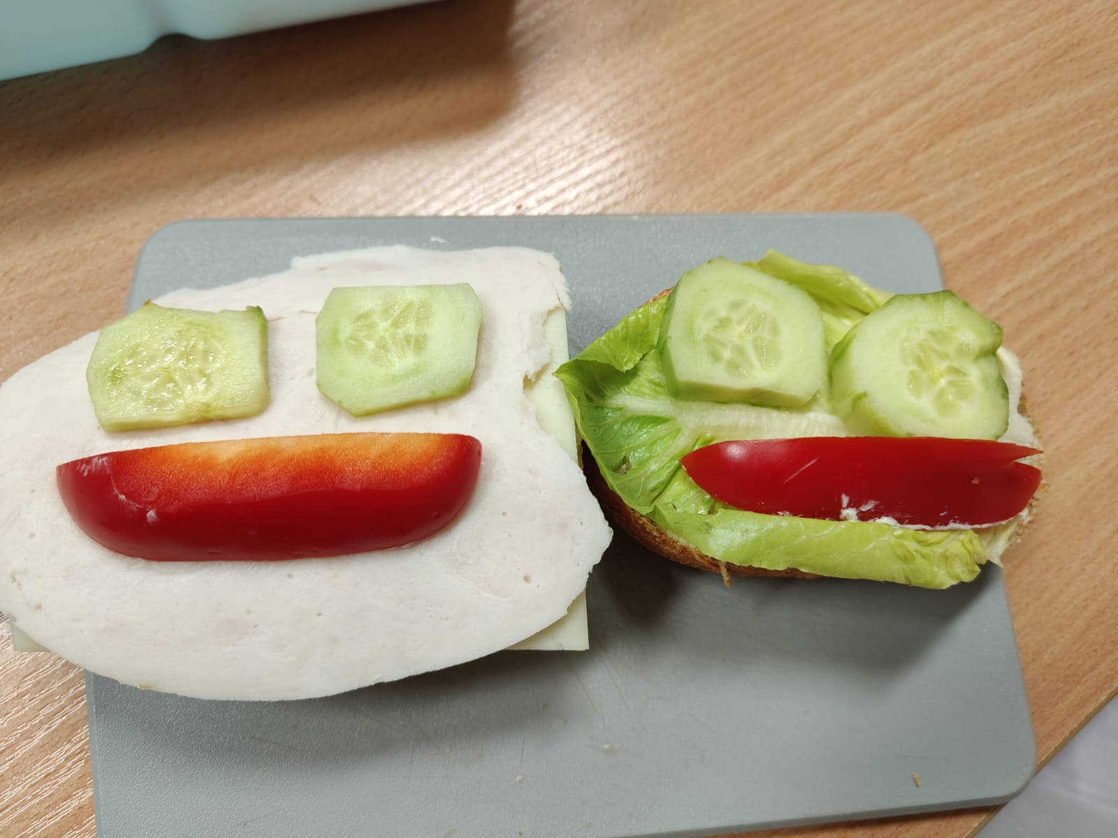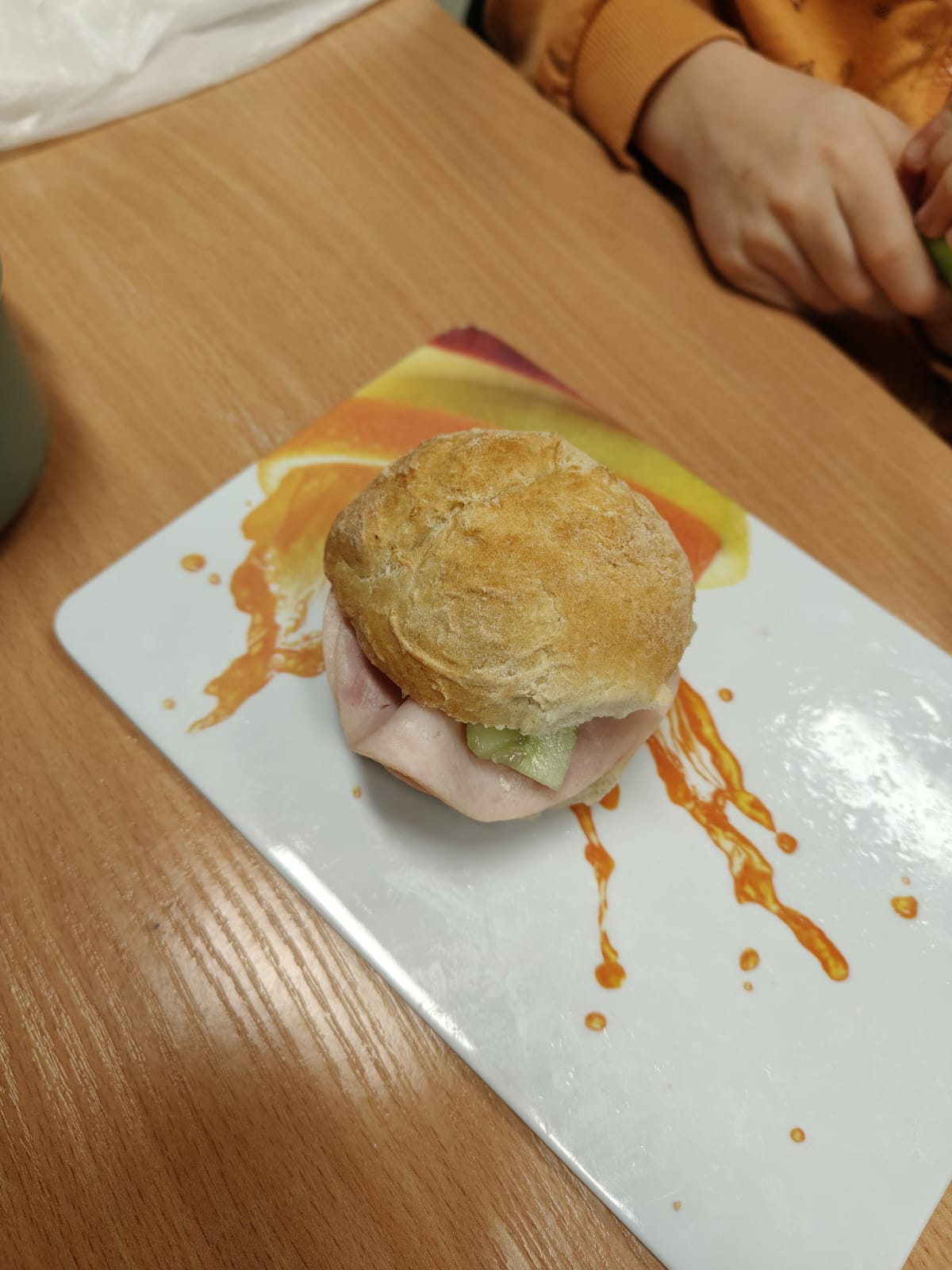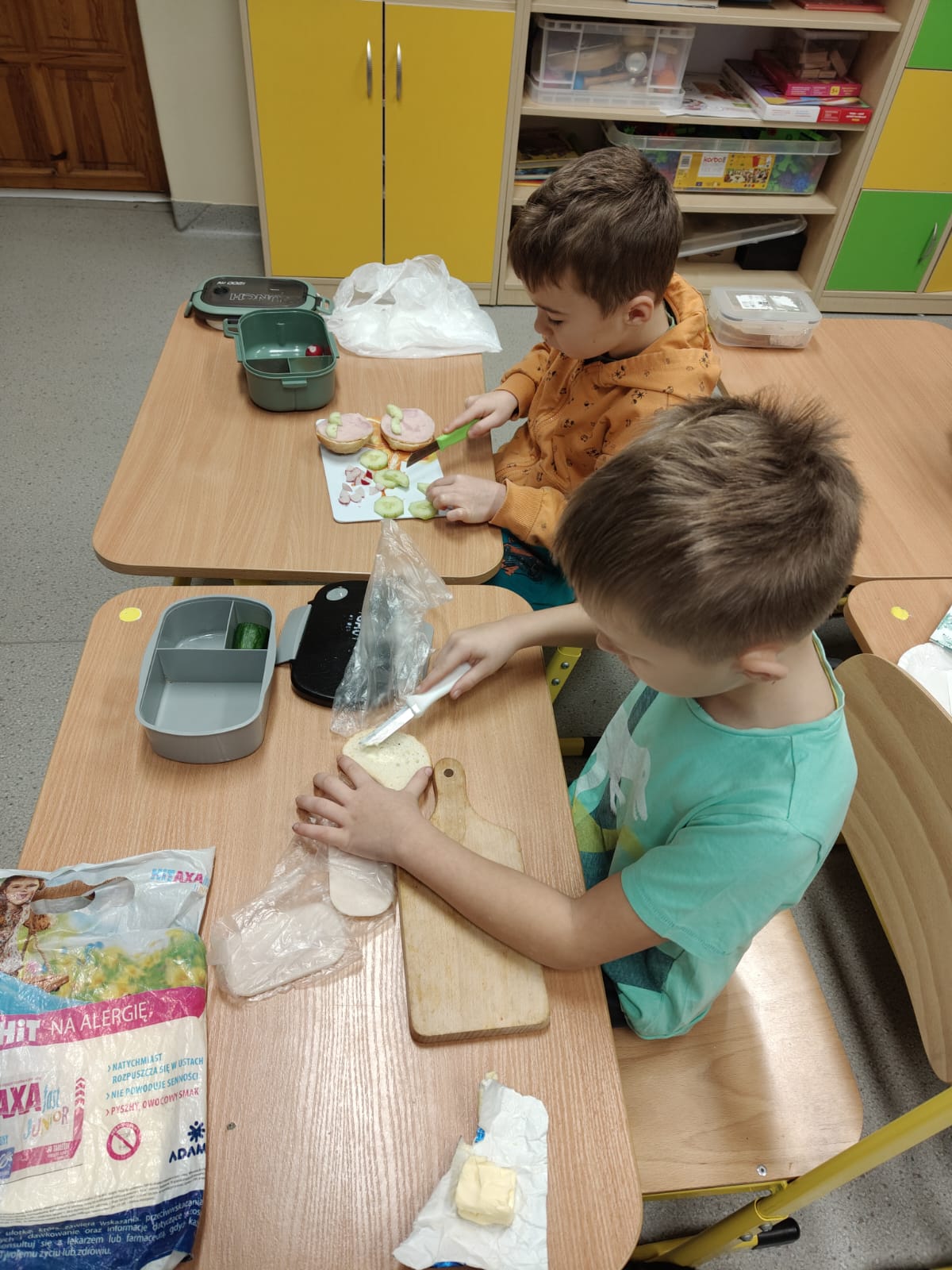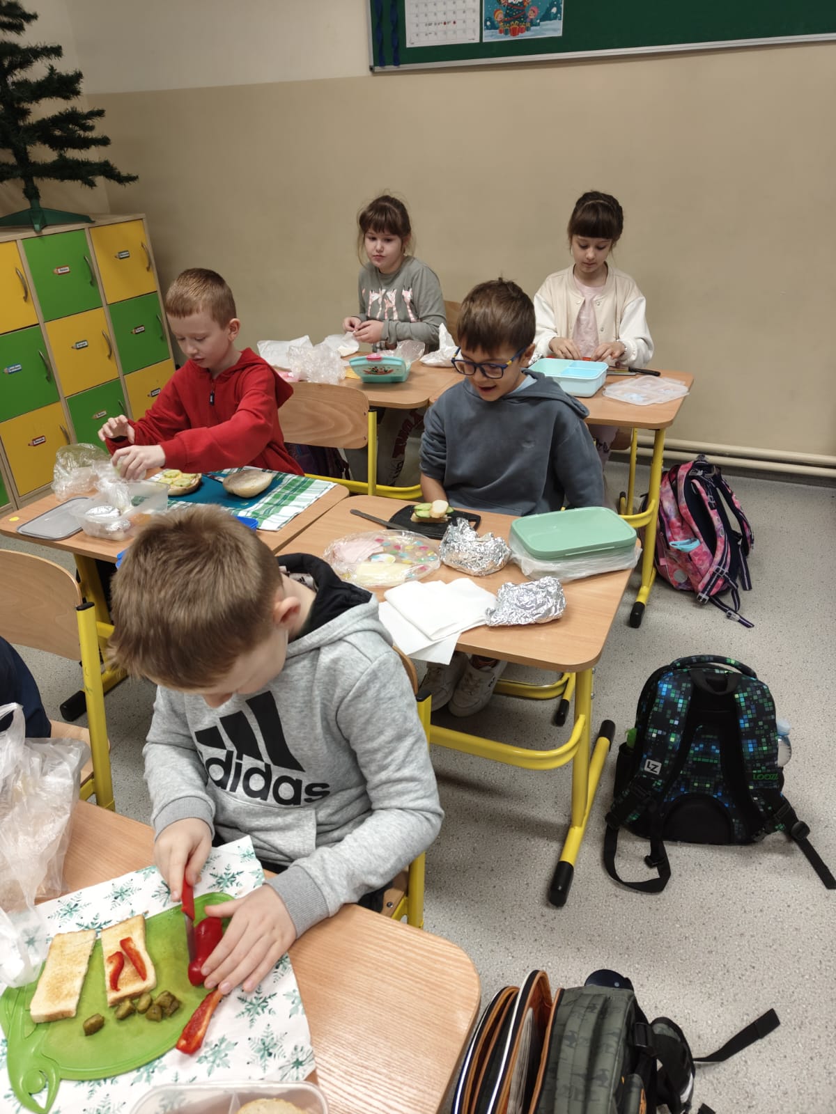 Uczniowie z ogromnym zaangażowaniem komponowali własne kanapki. Zajęcia były nie tylko pyszną przygodą, ale także wspaniałą okazją do rozmowy o tym, jak ważne jest jedzenie wartościowych posiłków. Dzieci chętnie dzieliły się tym, co lubią najbardziej, a wspólna degustacja przyniosła wiele radości i uśmiechów.