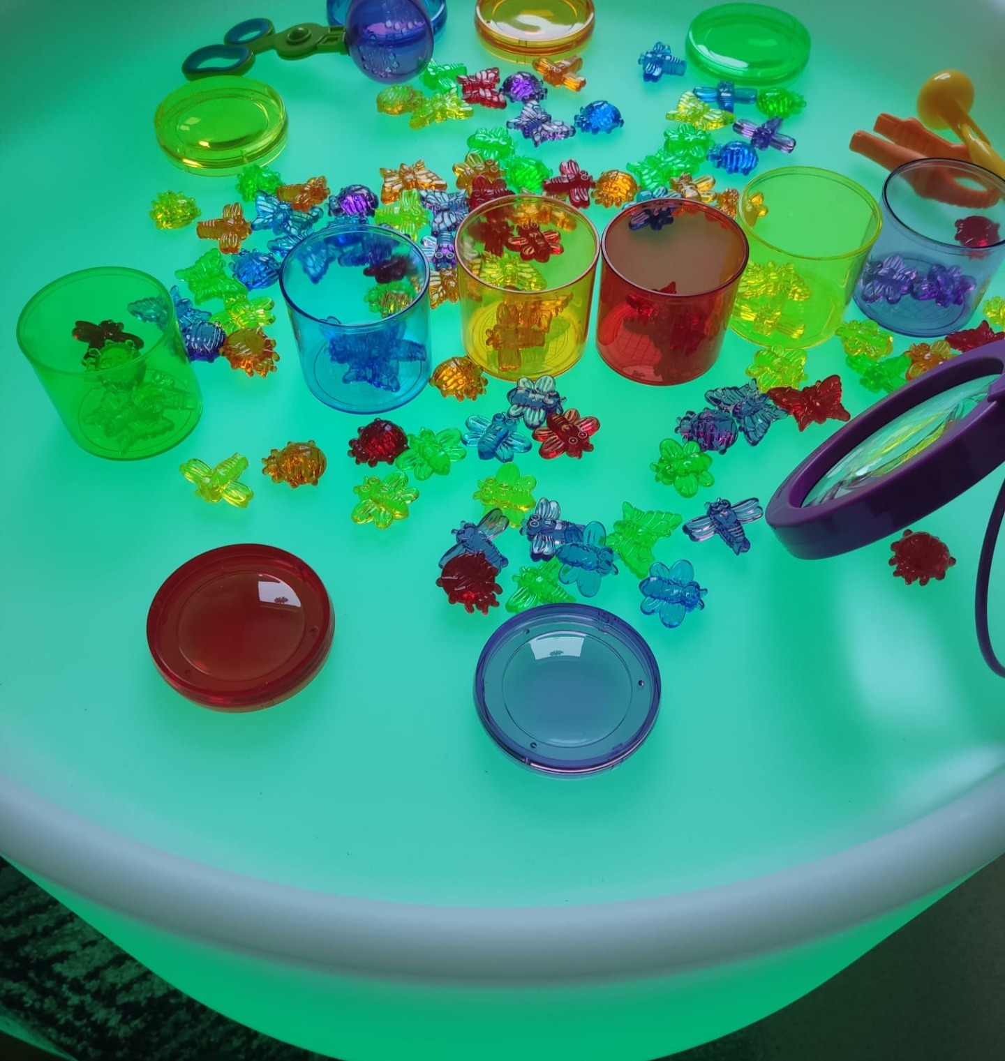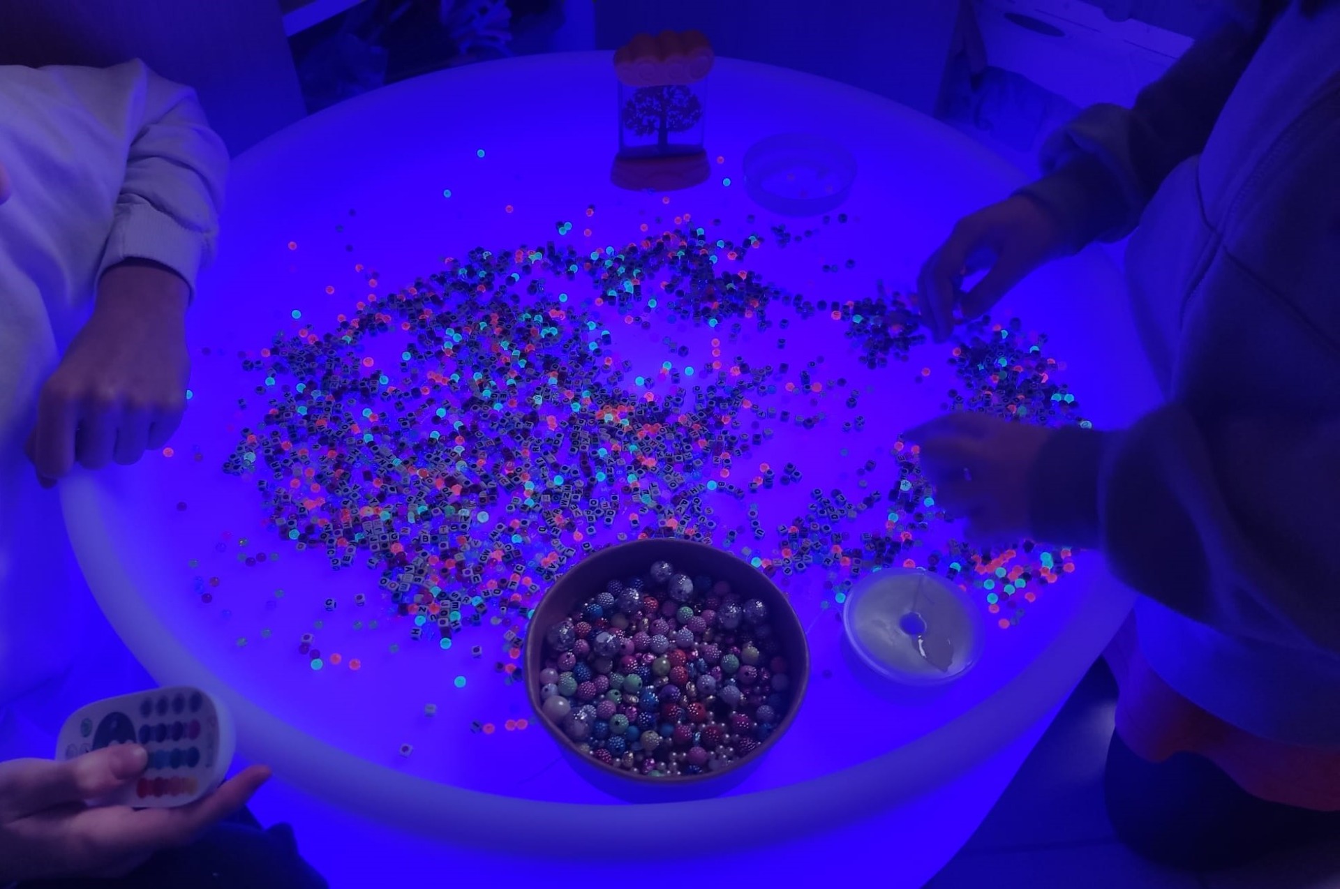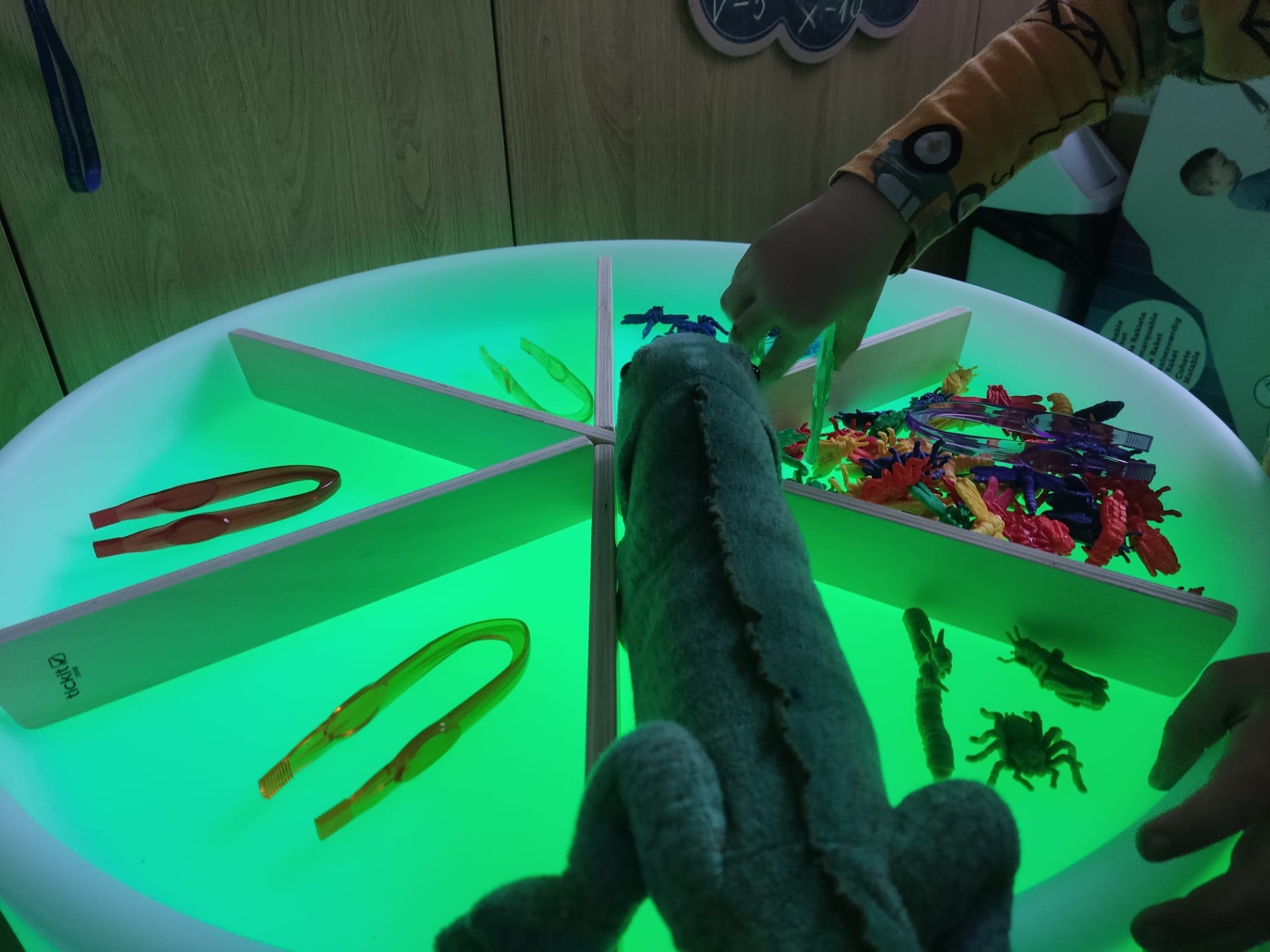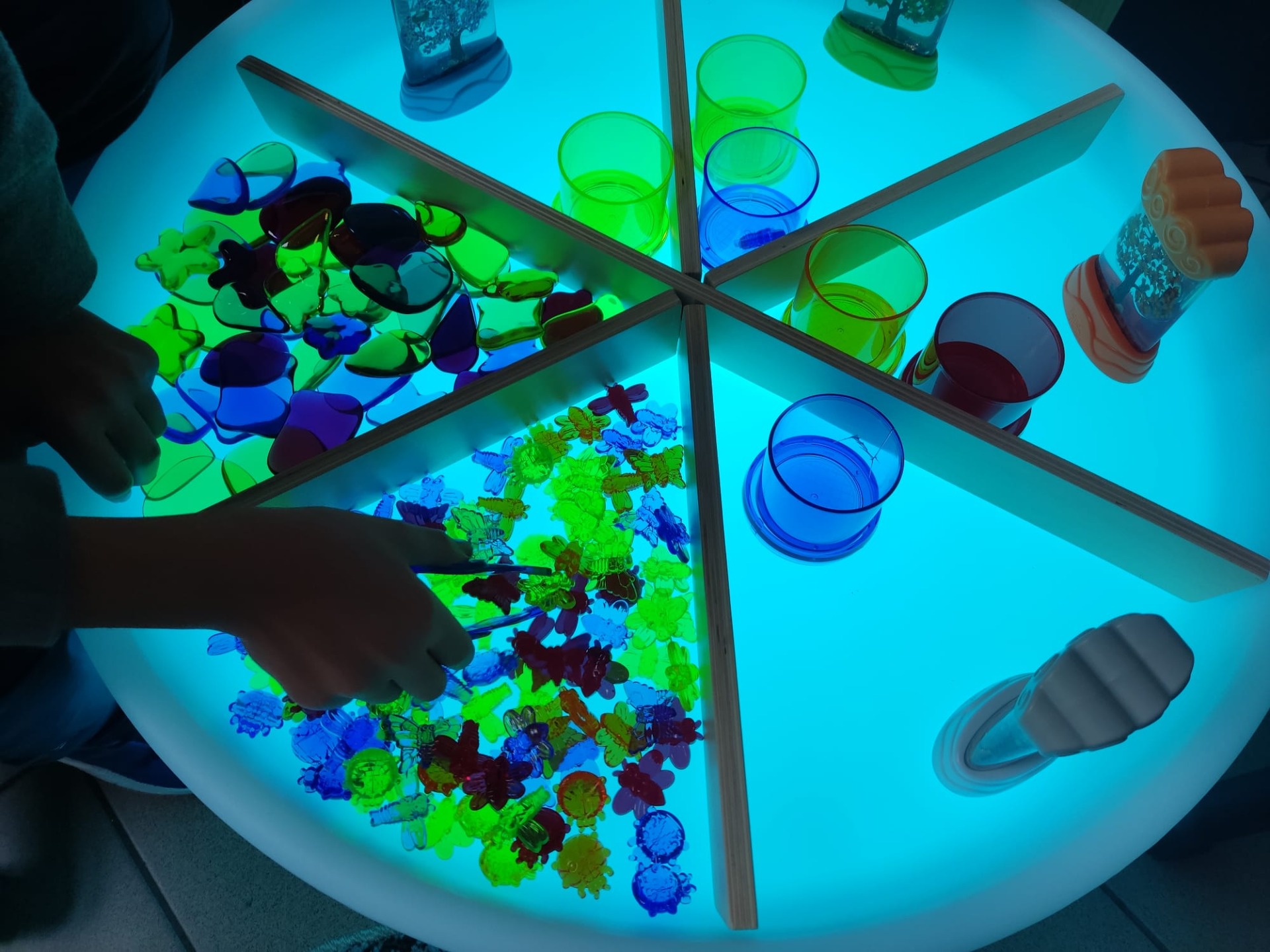 W ostatnim czasie wzbogaciliśmy gabinet o podświetlany stolik, który otwiera przed uczniami wiele nowych możliwości. To atrakcyjne i nowoczesne narzędzie pozwala dzieciom działać w sposób polisensoryczny. Światło, kolory i możliwość manipulowania różnorodnymi elementami sprawiają, że ćwiczenia stają się ciekawsze i bardziej motywujące.