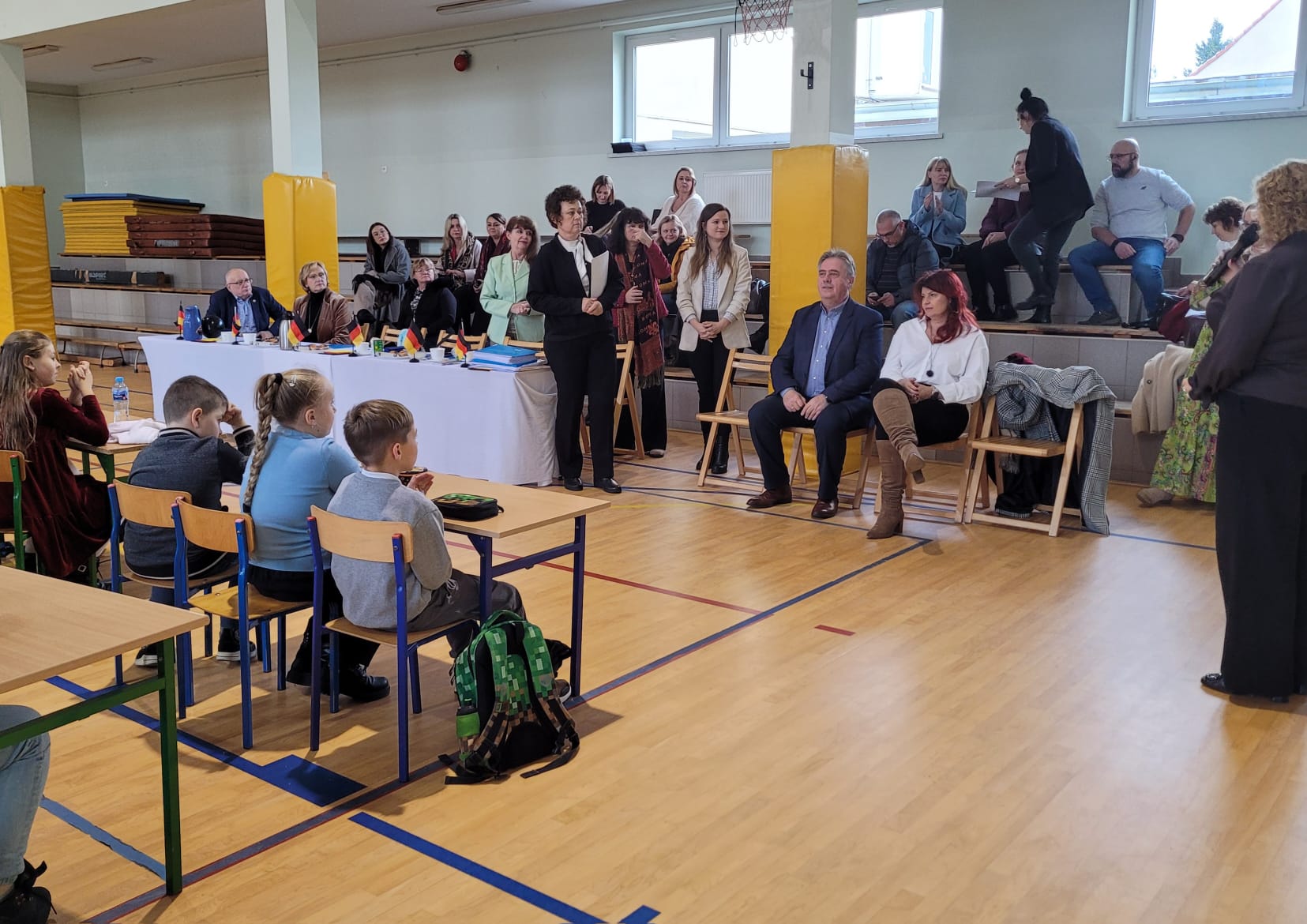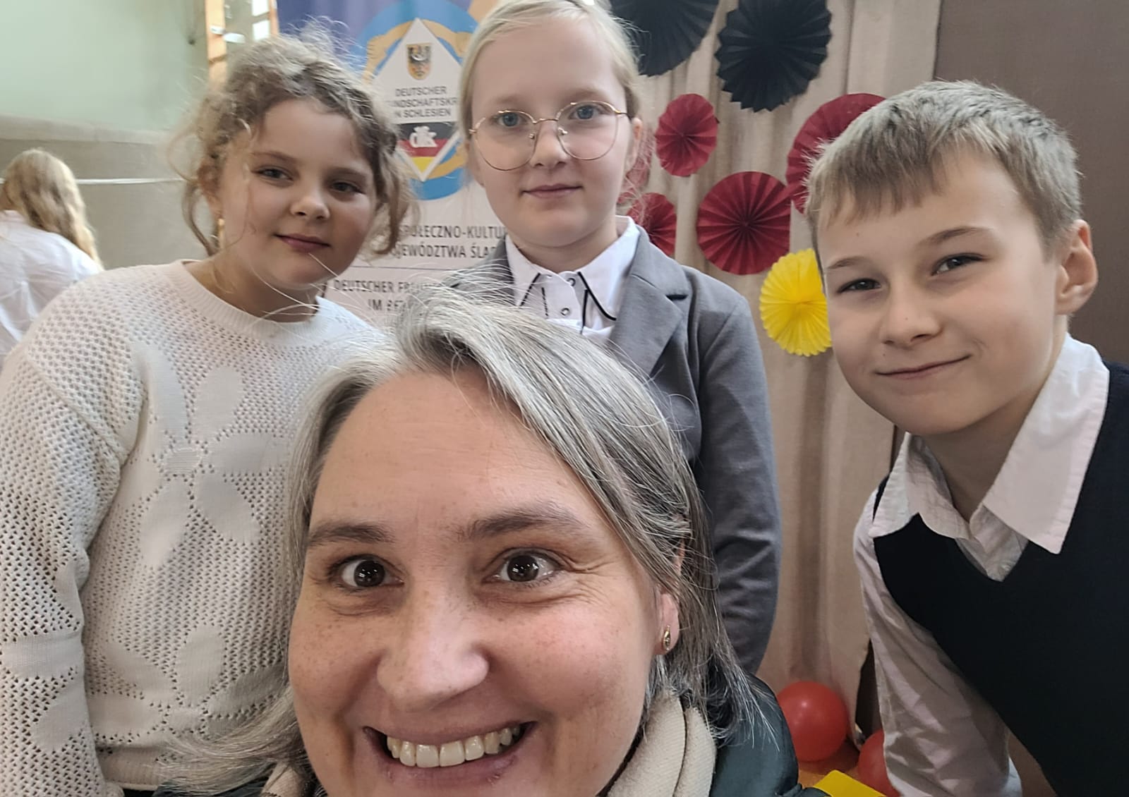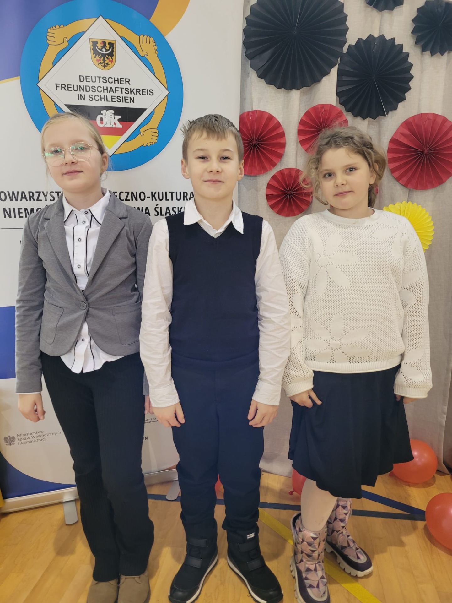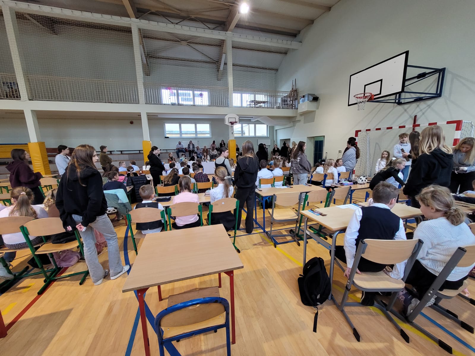 Wchodząc na salę gimnastyczną szkoły w Zabełkowie ze zdziwienia szeroko otworzyliśmy oczy. Nie spodziewaliśmy się, że w konkursie będzie uczestniczyło 60 osób z 20 drużyn. Postawiliśmy więc na zdobywanie doświadczenia i zabawę. Najpierw od 9.15 był godzinny test drużynowy, potem zadania indywidualne, czas na przekąskę i film. W tym czasie nasza Pani na warsztatach artystycznych wykonywała świąteczne upominki. W końcu o godz. 12.45 zaczęło się podsumowanie. I chociaż nasza drużyna nie stanęła na podium, to i tak wracamy bogatsi. Zobaczyliśmy, jak wiele dzieci uczy się języka niemieckiego i jak dobrze się nim posługuje. Wiemy też, że na sukces trzeba dużo pracować.