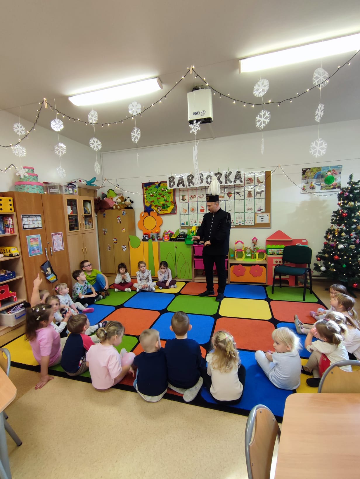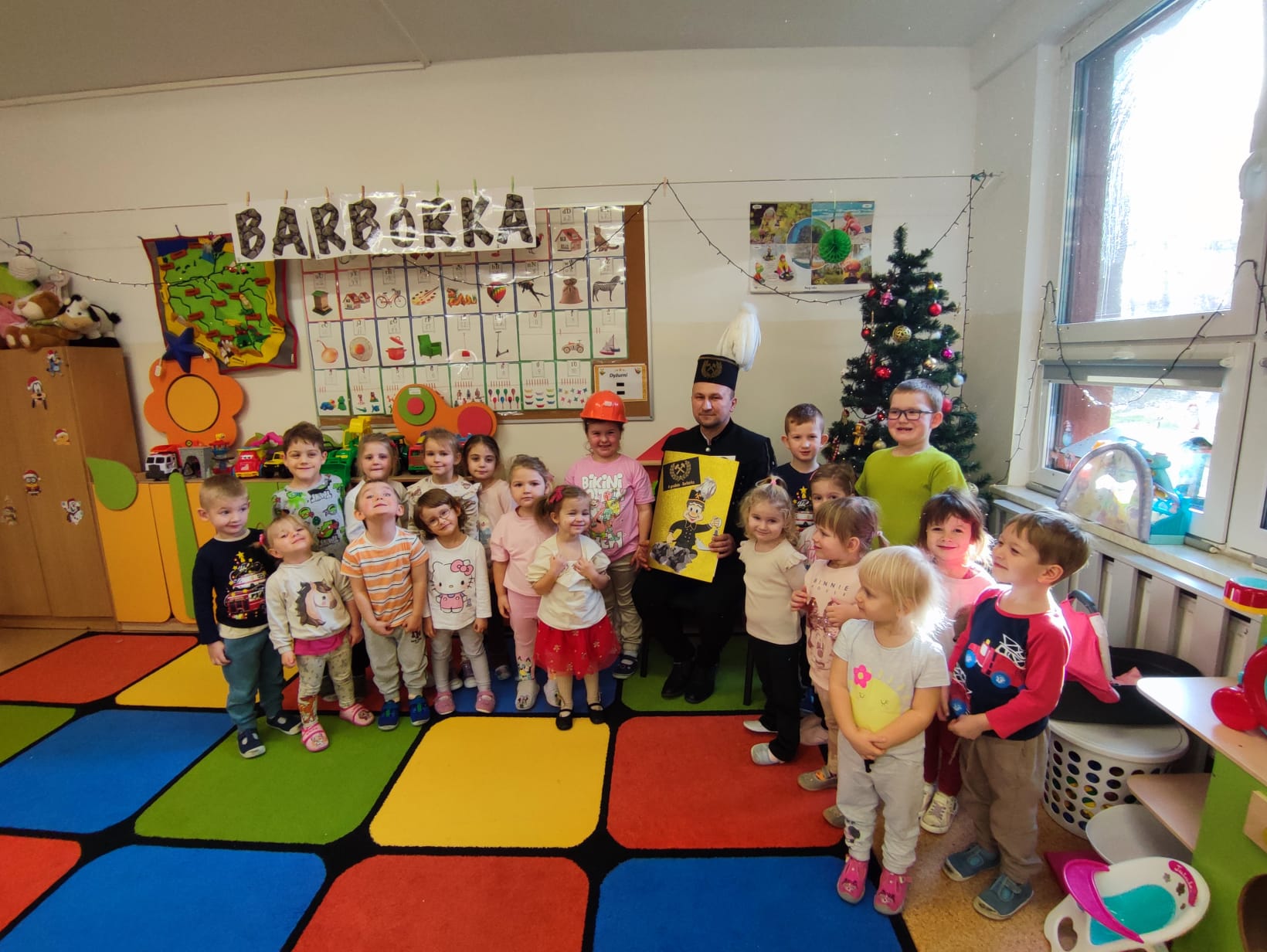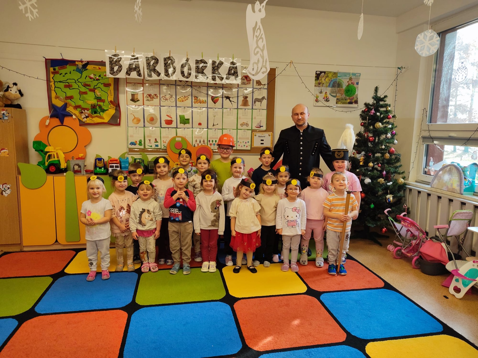 Z okazji Barbórki nasze przedszkole odwiedził wyjątkowy gość – pan Michał, tata jednej z naszych wychowanek, który na co dzień pracuje jako górnik. Przyszedł on ubrany w tradycyjny, odświętny strój górniczy, wzbudzając ogromne zainteresowanie wśród dzieci.