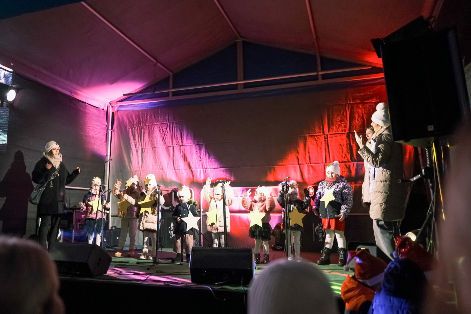 Przedszkolaki oraz uczniowie naszej placówki wzięli udział w świątecznym kiermaszu, który zgromadził wielu mieszkańców i gości. Dzieci zaprezentowały przygotowane piosenki o tematyce świątecznej, wprowadzając uczestników wydarzenia w ciepły, bożonarodzeniowy nastrój.