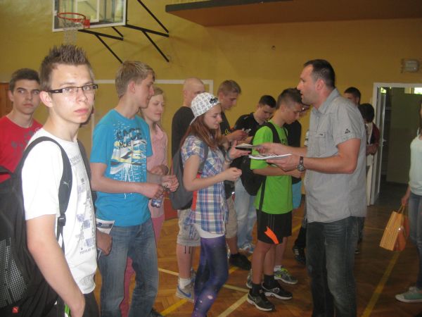 16 maja grupa zaproszonych uczniów z klas trzecich spotkała się z rówieśnikami z Zespołu Szkół Ogólnokształcących Mistrzostwa Sportowego im. Janusza Kusocińskiego w Raciborzu. W trakcie spotkania uczniowie rozegrali towarzyski mecz w piłce siatkowej oraz wzięli udział w interdyscyplinarnym quizie. Gimnazjaliści zwiedzili również pomieszczenia sportowe oraz zostali zapoznani z ofertą edukacyjną. Dziękujemy serdecznie dyrekcji oraz zaangażowanym nauczycielom za zaproszenie i zorganizowanie spotkania.