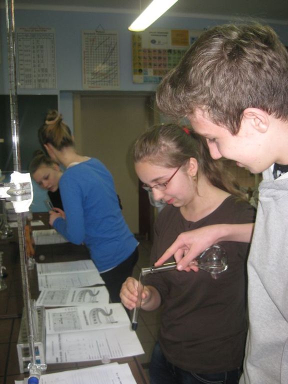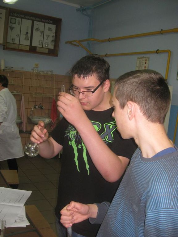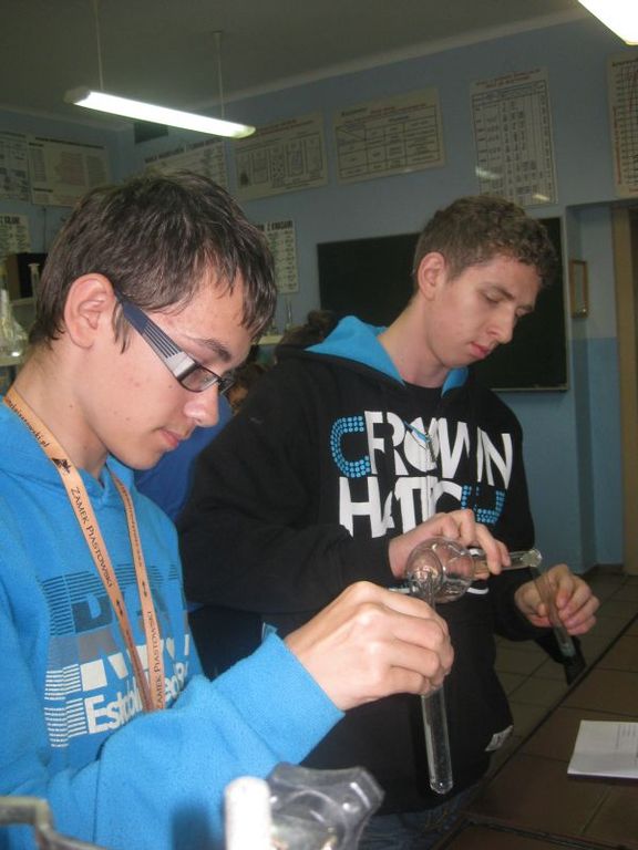 6 czerwca grupa uczniów z klas trzecich i drugich gimnazjum, wzięła udział w warsztatach chemicznych, które odbyły się Technikum Nr 3 w Raciborzu. Podczas zajęć uczniowie samodzielnie wykonywali doświadczenia, a obserwacje, równania reakcji oraz wnioski zapisywali na przygotowanych przez nauczycieli technikum kartach pracy. Warsztaty laboratoryjne dotyczyły otrzymywania soli. Dziękujemy nauczycielom chemii za zaproszenie na ciekawe zajęcia.