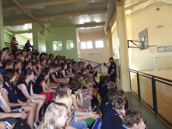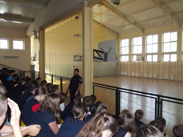 W ramach akcji "Bezpieczne Wakacje" 19 czerwca uczniowie gimnazjum wzięli udział w prelekcji przeprowadzonej przez funkcjonariusza Straży Miejskiej, p. Andrzeja Łabę. Tematem wiodącym pogadanki było bezpieczeństwo na drogach oraz podczas kąpieli. Omówione zostały również zasady kulturalnego spędzania czasu wolnego podczas wakacji oraz przypomniano młodzieży numery alarmowe, na które należy dzwonić w przypadku zagrożenia.