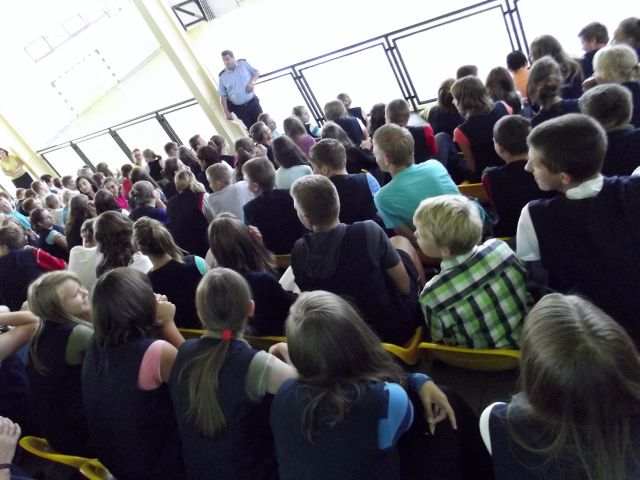 W piątek naszą szkołę odwiedził przedstawiciel raciborskiej Straży Miejskiej, który przypomniał gimnazjalistom zasady bezpiecznego poruszania się i zachowania w drodze do i ze szkoły.