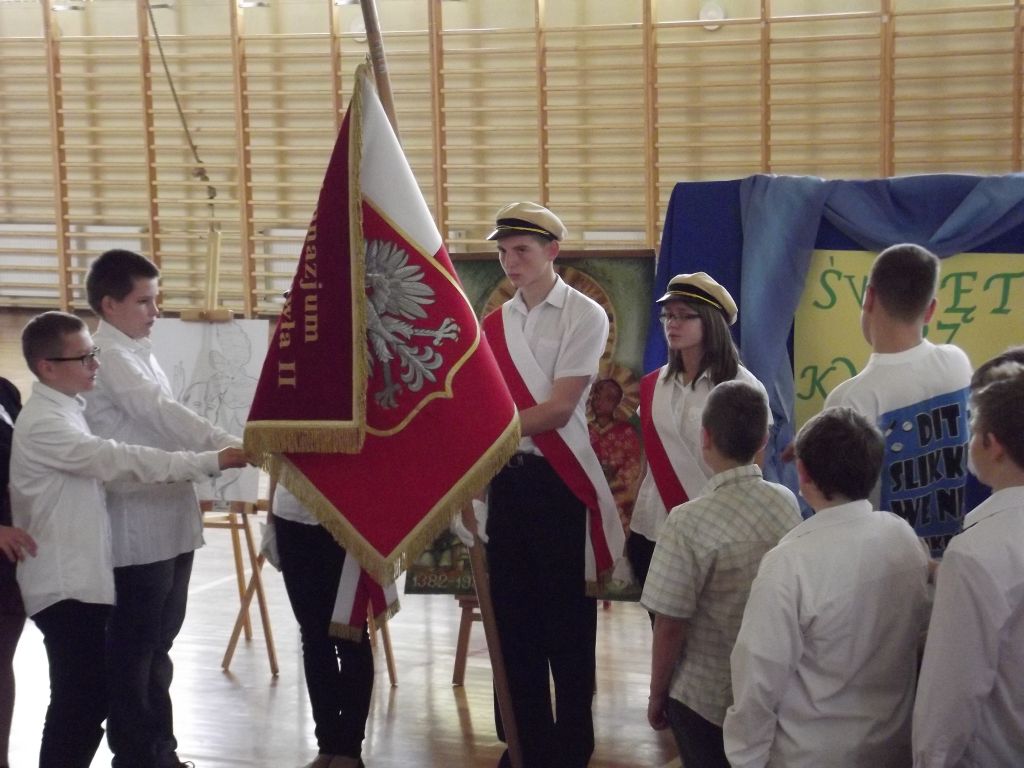 Uroczystość składała się zatem z trzech części, które przygotowali uczniowie pod czujnym okiem opiekunów: B. Placek, C. Szafraniec, B. Stawinogi i K. Franicy.
