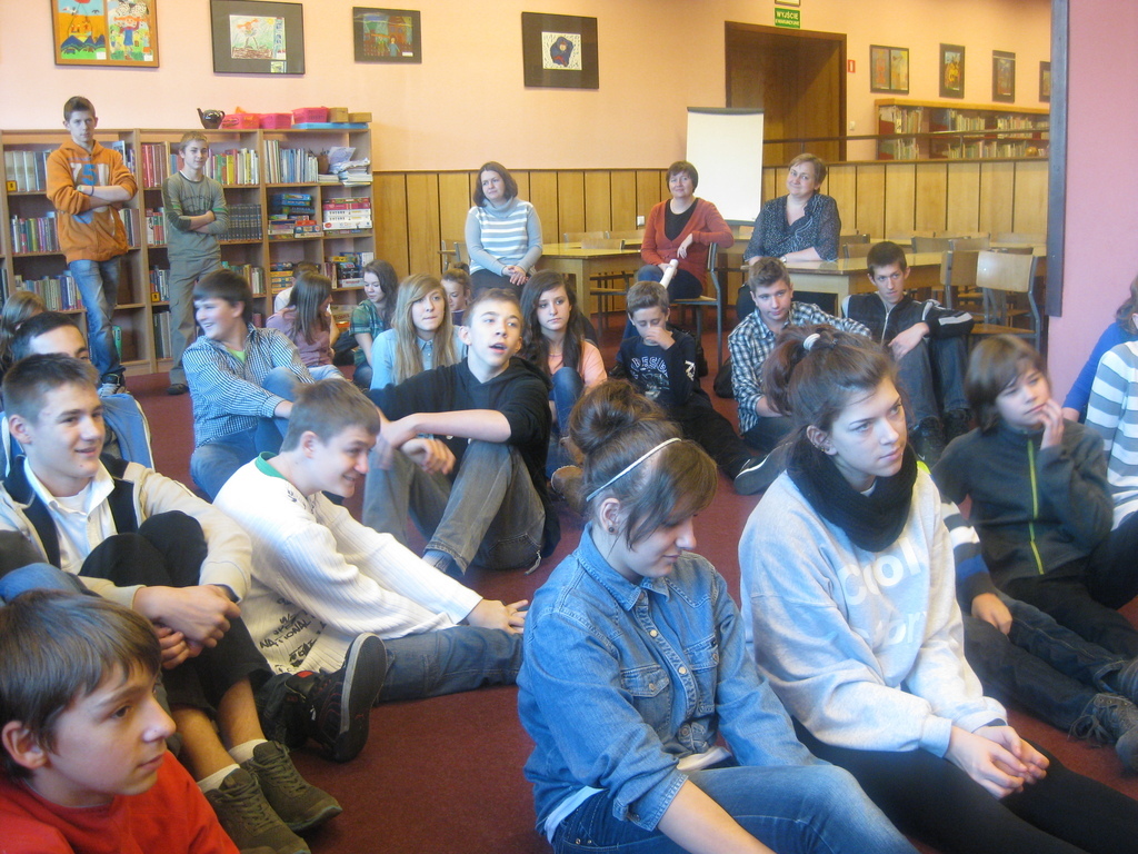 Po wizycie w teatrze uczniowie zwiedzili Miejską i Powiatowa Bibliotekę w Rybniku, gdzie mogli zobaczyć (drugą po Bibliotece Śląskiej w naszym województwie) całkowicie skomputeryzowaną i bardzo dużą, w porównaniu ze znanymi dotychczas dzieciom, placówkę. Wyjazd był dla gimnazjalistów dopełnieniem treści z podstawy programowej po omówieniu lektury na lekcjach języka polskiego.
