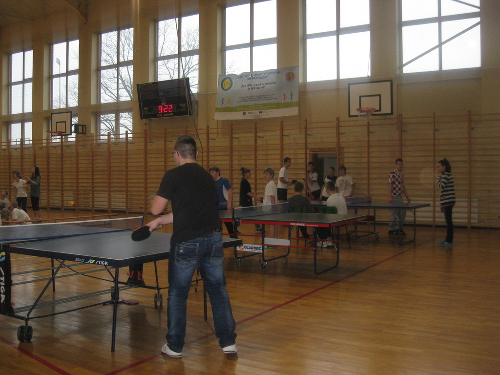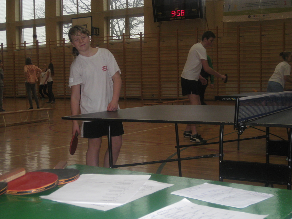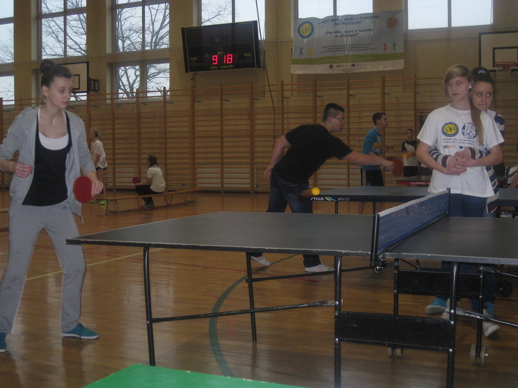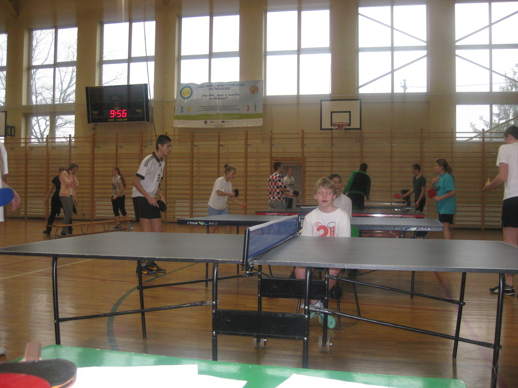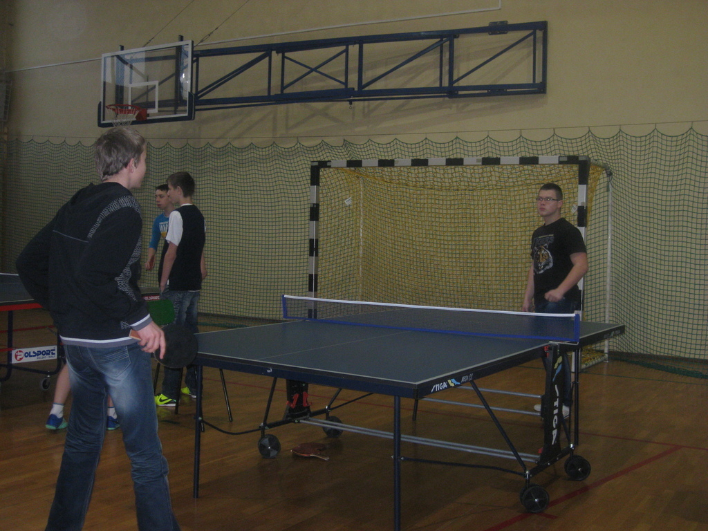 Dnia 14 stycznia na pierwszej godzinie lekcyjnej rozpoczął się szkolny turniej tenisa stołowego. W zawodach wzięło udział 16 dziewcząt i 16 chłopców. Turniej rozgrywany był systemem brazylijskim (do dwóch przegranych). Celem rozgrywek było wyłonienie drużyn na zawody powiatowe, które odbędą się 7 lutego w Krzanowicach. Zawody rozgrywały się na 4 stołach „pod okiem” 4 dziewczyn z klasy IIIb, które realizowały projekt edukacyjny „Organizacja turnieju tenisa stołowego”.