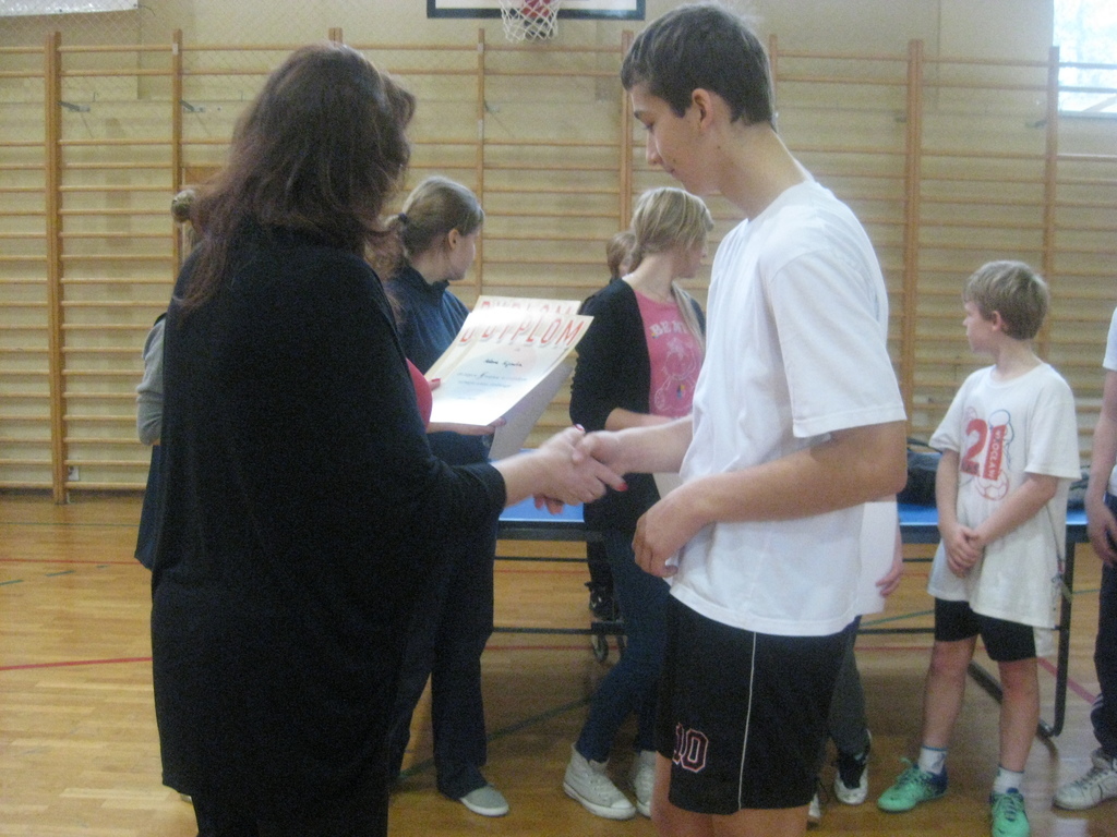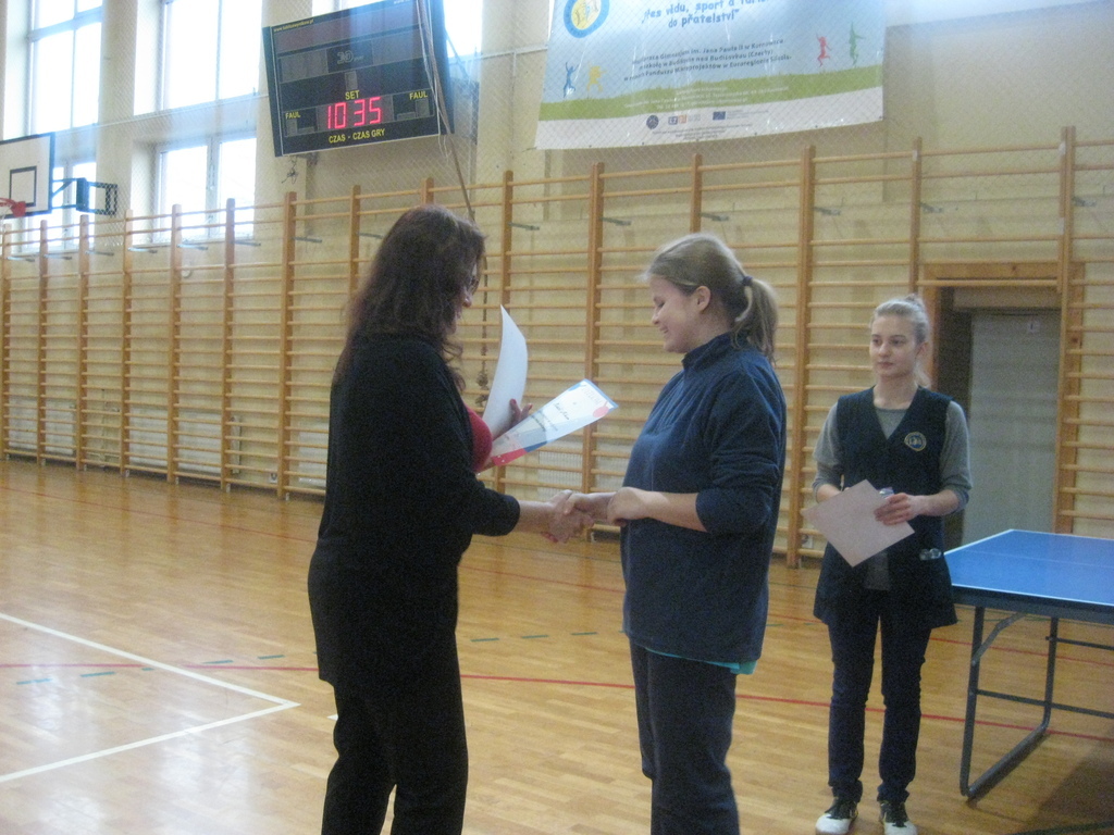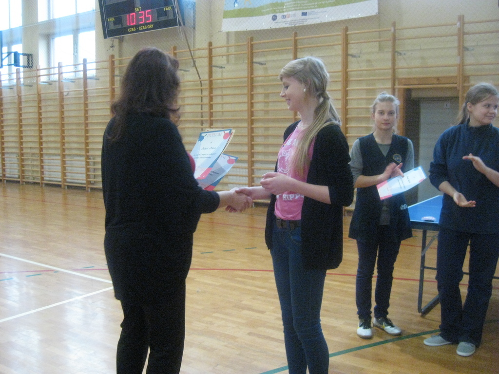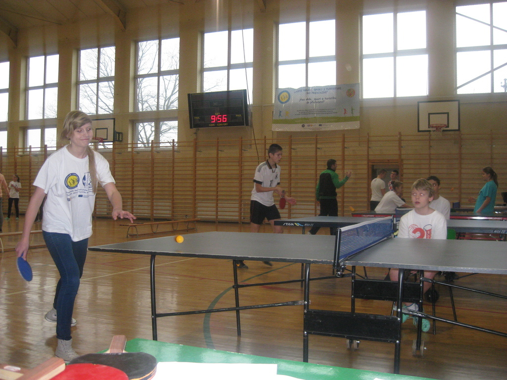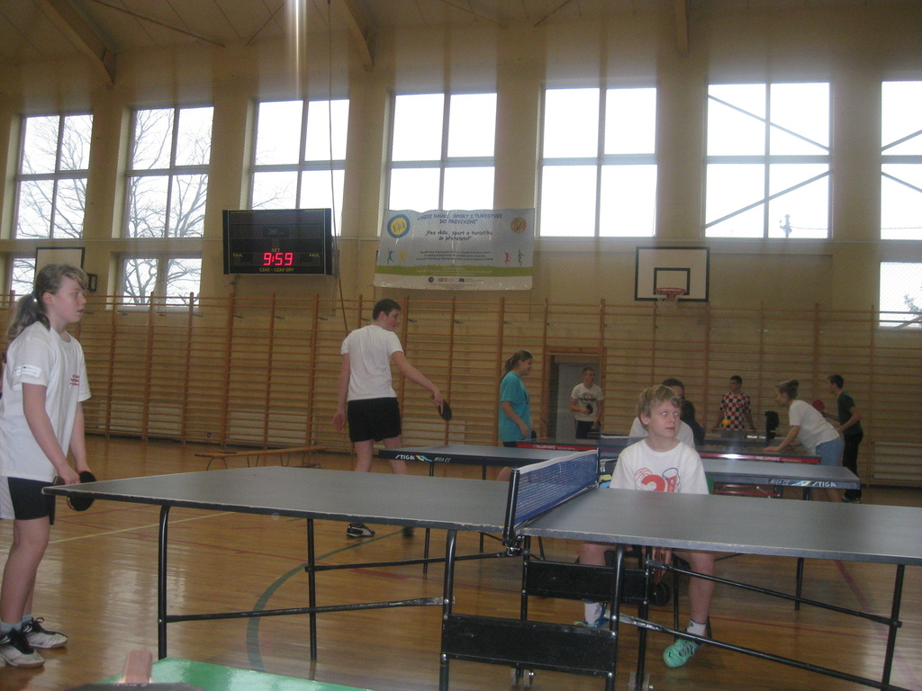 Dnia 14 stycznia na pierwszej godzinie lekcyjnej rozpoczął się szkolny turniej tenisa stołowego. W zawodach wzięło udział 16 dziewcząt i 16 chłopców. Turniej rozgrywany był systemem brazylijskim (do dwóch przegranych). Celem rozgrywek było wyłonienie drużyn na zawody powiatowe, które odbędą się 7 lutego w Krzanowicach. Zawody rozgrywały się na 4 stołach „pod okiem” 4 dziewczyn z klasy IIIb, które realizowały projekt edukacyjny „Organizacja turnieju tenisa stołowego”.