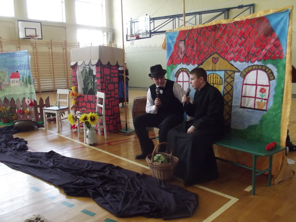 14 lutego w naszym gimnazjum odbył się Walentynkowy Dzień Seniora, którego motywem przewodnim była miłość. Z tej okazji uczniowie wraz z opiekunami p. Barbarą Stawinogą oraz p. Katarzyną Szyrą przygotowali dla swoich najbliższych przedstawienie "Romeo i Julia po śląsku", które przeplatane było występami wokalnymi solistek i popisami gry na akordeonie i organach. Podczas występów aktorzy ubrani byli w tradycyjne śląskie stroje, które do niedawna nosiły nasze babcie. Stroje te zostały pożyczone z naszej szkolnej izby tradycji. Niejedna babcia wspominała, jak to było w czasach, kiedy i ona nosiła takie ubranie. Zaproszeni dziadkowie i babcie z dumą podziwiali popisy swoich wnucząt, a w rozmowach z nauczycielami opowiadali o swoich pociechach.