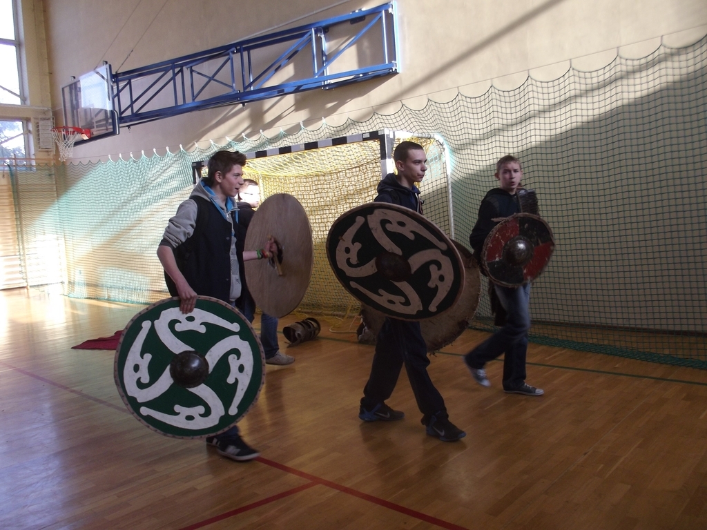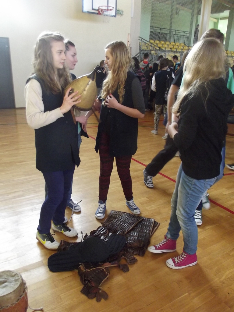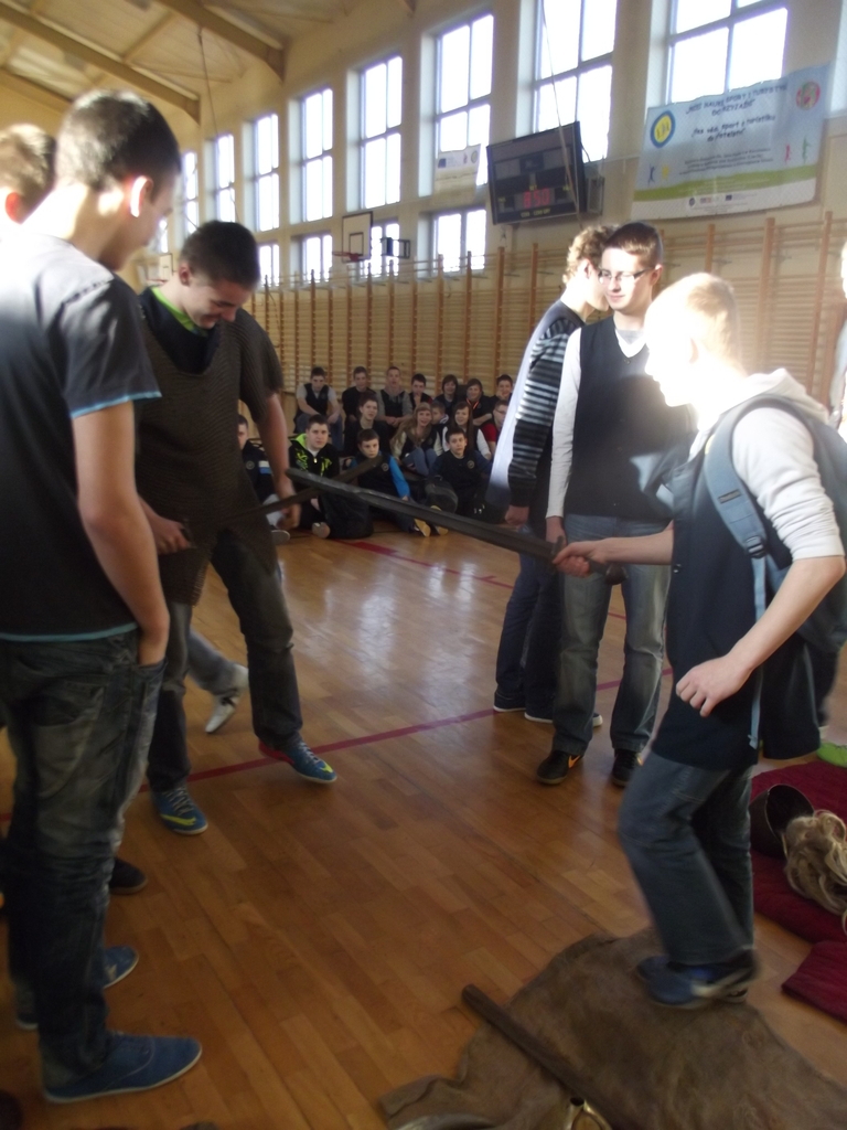 18 lutego wszyscy gimnazjaliści wzięli udział w żywej lekcji historii pt. „Od Mieszka I do Bolesława Krzywoustego”. Lekcję prowadzili panowie z Drużyny Wojów z Torunia.