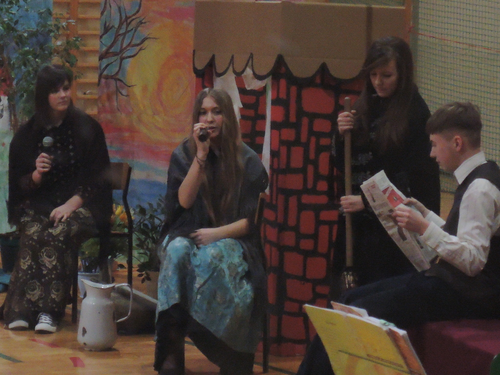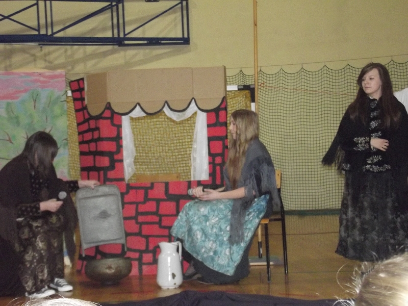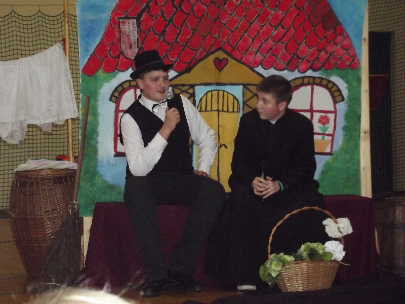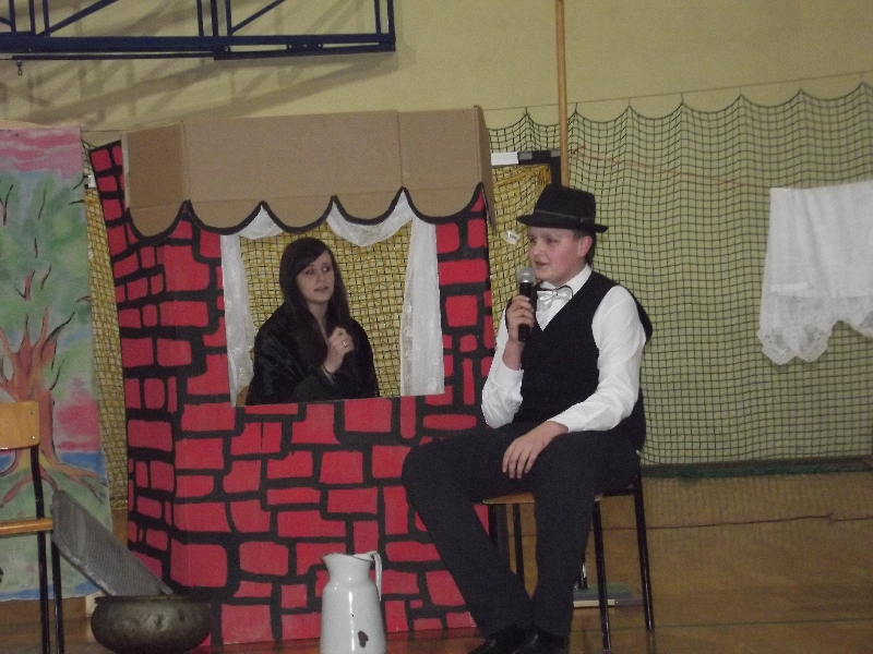 Spotkanie rozpoczęło się spektaklem teatralnym pt. „ Jo Ci przaja ,Ty mi przajesz, czyli Romeo i Julia po Śląsku”. Uczniowie wspaniale zaprezentowali swój talent aktorski: (Julia - Patrycja Wierzbicki, Romeo - Adrian Krzemień, Farorz - Seweryn Franiczek, Francik - Denis Piela, Siostry - Sandra Wieczorek i Marta Szamara, Staro Ciapulczyno - Agnieszka Helis oraz lektor – Radosław Krasek). W czasie kolejnych aktów przedstawienia swoimi umiejętnościami gry na instrumencie chwalili się Karol i Grzegorz Przybyła. W ich wykonaniu usłyszeliśmy utwory takie jak: ‘’Serduszko puka”, „ Skrzydlate ręce”, „Wszystko mi mówi ,że mnie ktoś pokochał”.