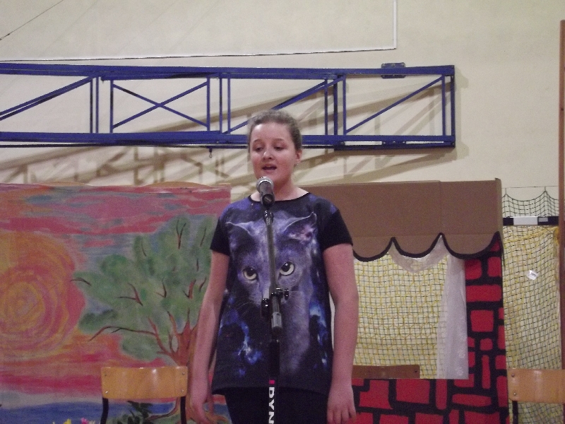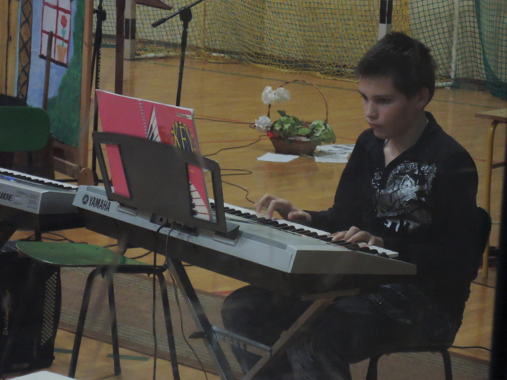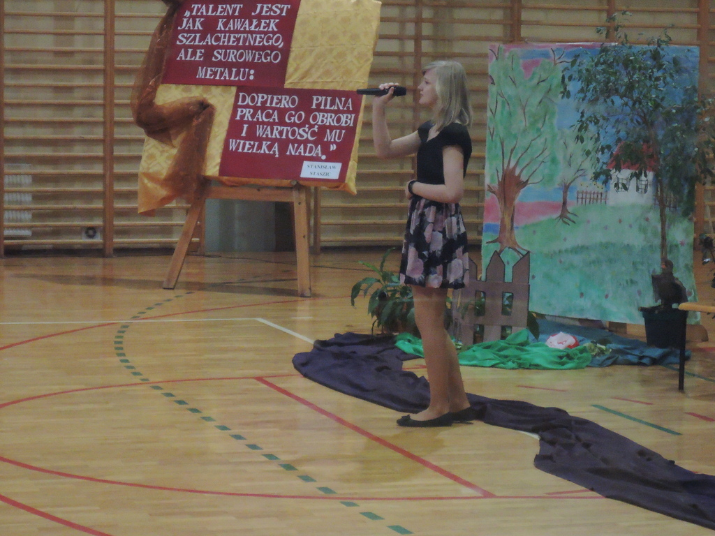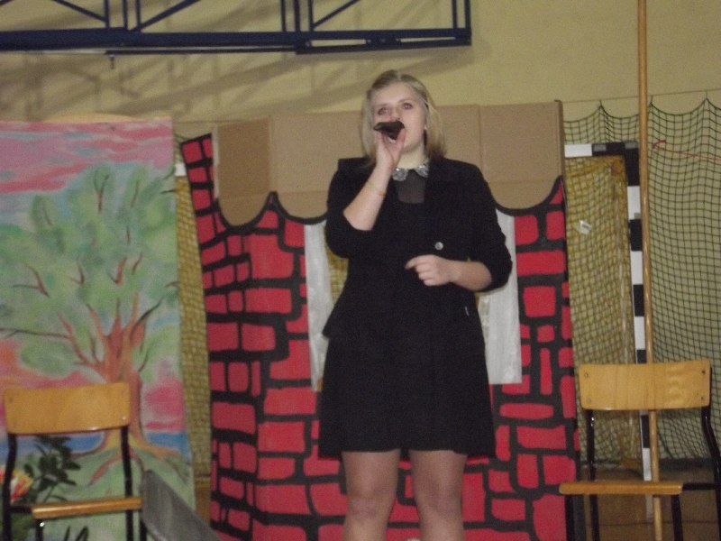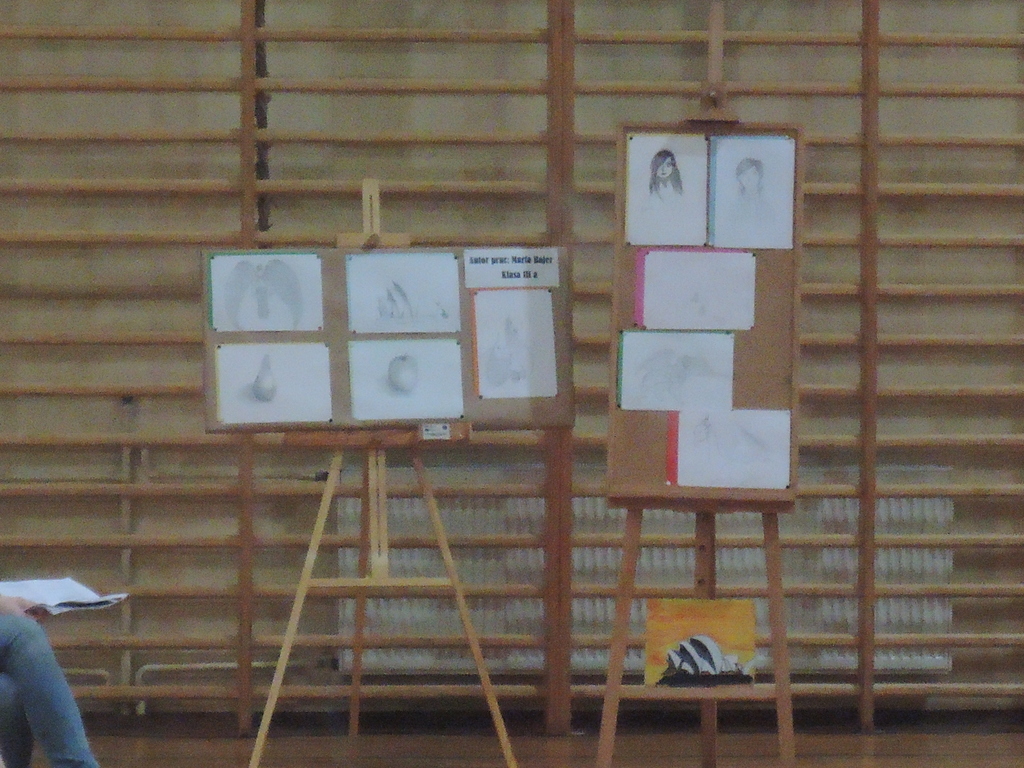 Następnie uczennice prezentowały swoje umiejętności wokalne: Wiktoria Bogdan -„ Na pierwszy znak”, Żaneta Kuśmierz -„ Miłość jak wino”, Sylwia Kocjan -„ Miłość Ci wszystko wybaczy”, Paulina Kowol -„ Piękny Świat”, Natalia Niedbała –„ Kolorowy wiatr’’, Patrycja Wierzbicki -„ Barcelona”, Sandra Wieczorek - „Kołysanka dla nieznajomej”, Daria Granieczny -„ Listopady liści” oraz duet wokalny Sylwia Kocjan i Wiktoria Bogdan - „Ruchome piaski”. Popisy uczniowskie na instrumencie, rozpoczął Mateusz Hałacz grą na harmonijce ustnej. W jego wykonaniu usłyszeliśmy trzy utwory: „Przybyli ułani”, „Deszcze niespokojne” oraz „Odę do radości”. Następnie Piotr Krolik na keyboardzie zaprezentował dwa utwory: „Anytime, Any place, anywhere” i „Hello Dolly”. Michał Szwedowski wystąpił z własną kompozycją Beat box. Swój talent taneczny zaprezentowały uczennice klas trzecich: Oliwia Mentel w tańcu klasycznym a później Kasia Dec w tańcu nowoczesnym. Na zakończenie wydarzenia, we własnej kompozycji, zaprezentował się Damian – McWojas. Swoimi umiejętnościami plastycznymi pochwaliła się Marta Bajer, wystawiając swoje prace.