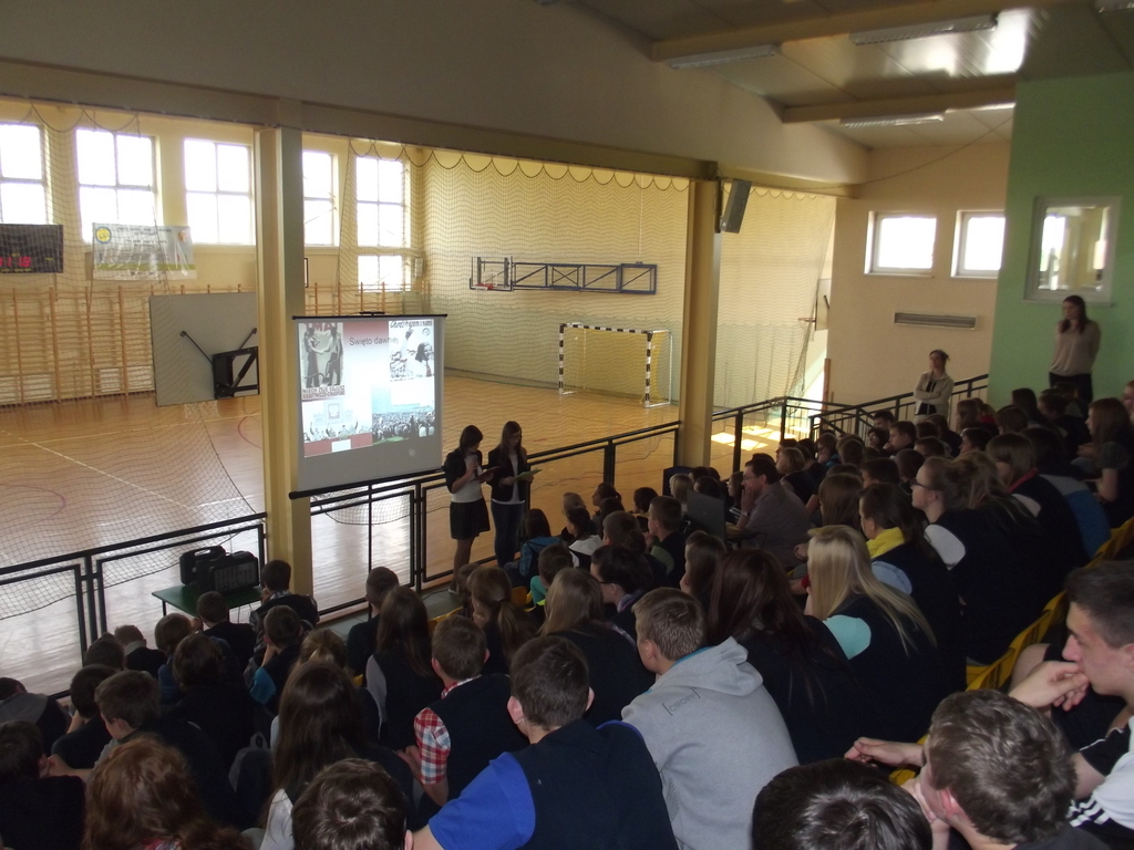 W dniu 28 kwietnia br. odbyła się akademia upamiętniająca święta majowe i rocznice wydarzeń ważnych dla naszego państwa. Na wstępie oddano szacunek symbolom państwowym. Wydarzenia upamiętnione to: 15 rocznica wstąpienia Polski do NATO (12 marca), święto ludzi pracy i 10 rocznica członkostwa Polski w Unii Europejskiej (1 maja), dzień flagi (2 maja), rocznica wybuchu III Powstania Śląskiego (2/3 maja), święto konstytucji 3 maja i 25 rocznica obalenia komunizmu w Polsce (4 czerwca). Uroczystość oprawiono prezentacją multimedialną i filmami m.in. o wojsku polskim, symbolach narodowych i reportażu z obrad „okrągłego stołu” i przemówienia premiera Tadeusza Mazowieckiego. Akademię przygotowała klasa II b wspólnie z p. Tomaszem Kozielskim.